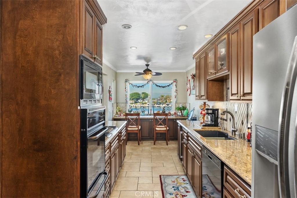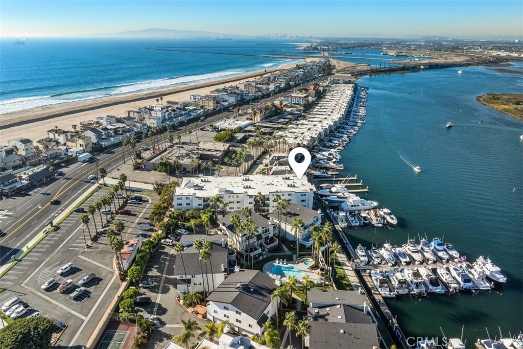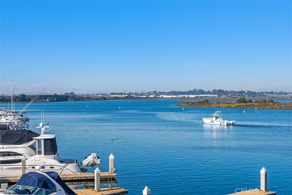 Experience waterfront living with stunning panoramic views in this single-level Bayport condo, offering one of the best views in Huntington Harbour showcasing the extra wide main channel, wetlands, and snow-capped mountains. This home is ideally situated next to the newly renovated Peter's Landing offering a wide variety of waterfront dining and shopping options and just moments from the serene sands of Sunset Beach, both of which offer a plethora of water activities including boat docks available for rent in the Peter's Landing Marina. The home's floor plan includes three bedrooms, with one currently configured as an open den with harbor views and sliding barn doors for guests that can easily be converted back to a third bedroom, along with three bathrooms. The spacious primary suite features dual bathrooms and a large walk-in closet. The kitchen, breakfast nook, dining room and living room all enjoy wide water views, and the living area opens to the recently renovated waterfront balcony. Additional features include a living room fireplace and wet bar, a laundry room with a second refrigerator, and a wine fridge. Located in the gated Bayport community, residents enjoy private building and elevator access and a variety of amenities including a harbor-front clubhouse, heated pool and spa, barbecue area, and pickleball / tennis court. This home is the perfect place to watch the holiday boat parade or simply enjoy your daily cup of coffee while admiring the serenity of waterfront living. You may even spot a dolphin or sea lion swimming by!
