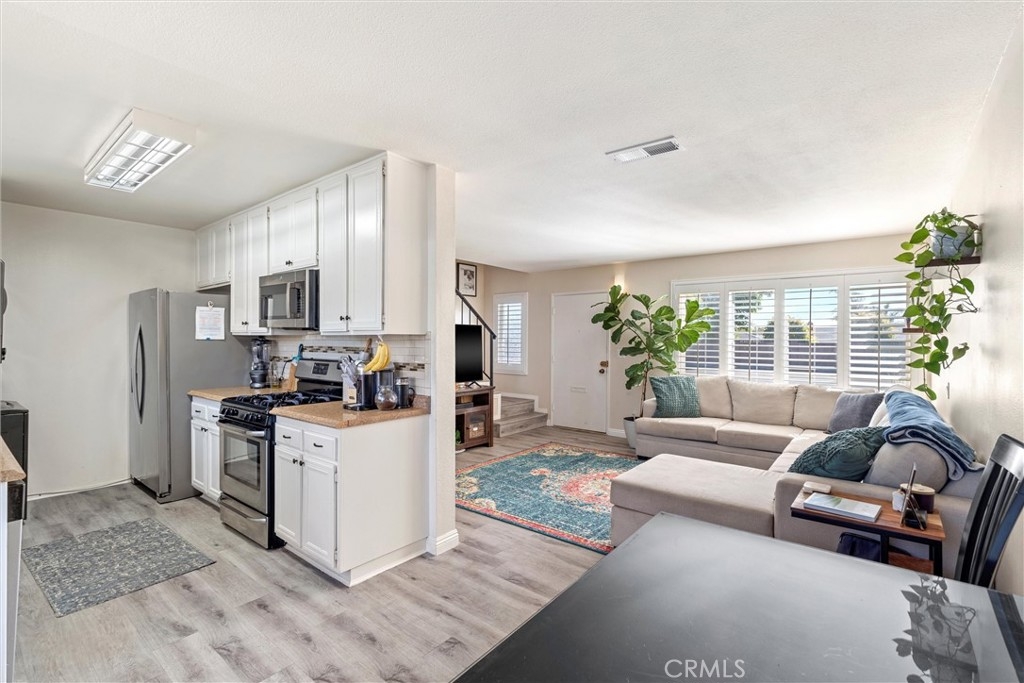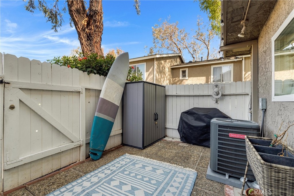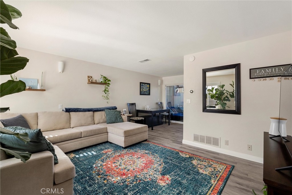 WELCOME HOME to an absolutely fabulous condo in the heart of Huntington Beach! The two bedroom, one bath condo is light and bright with a fabulous open floor plan. Featuring luxury vinyl flooring, double pane windows, plantation shutters, central air and heat, and inside laundry, this condo truly has it all! Both bedrooms are spacious with ample closet space, and one room and the updated bathroom feature trendy Roman clay. The kitchen, dining, and indoor/outdoor living areas flow seamlessly, and you can enjoy an ocean breeze from your private patio. The patio also has an additional entry to the property from the lush, green community which also features a fabulous community pool with... LOW HOAs!!!! This property also comes with a dedicated carport parking space and 3 private storage cabinets, and there is plenty of street parking for guests. Enjoy coastal living to the max in sunny Southern California and see this condo today!