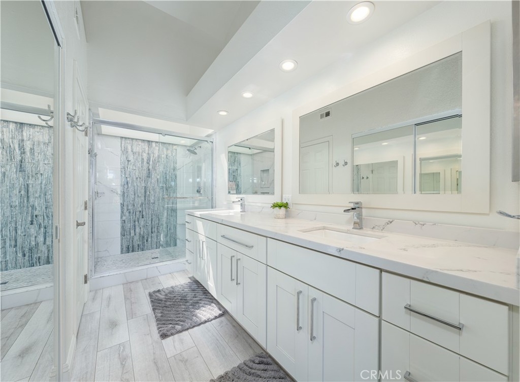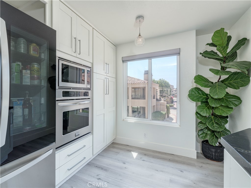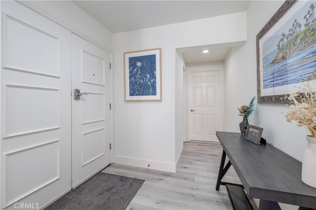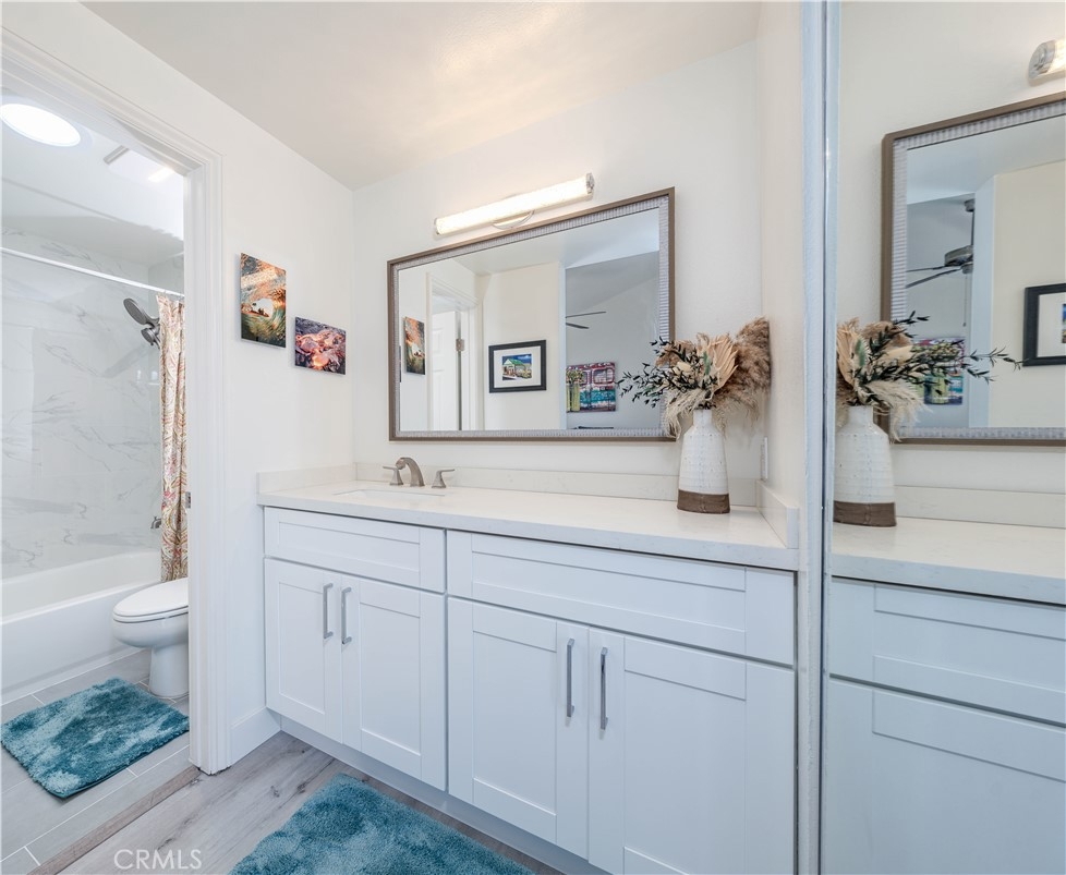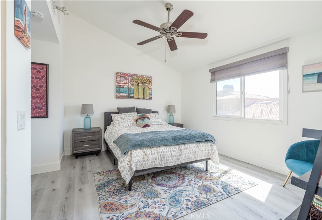 This exquisite 2-bedroom, 2.5-bathroom condo is nestled in the picturesque Broadmoor Huntington Harbour, a rare gem of a waterfront community just a short stroll from the pristine ocean and the serene beaches along the bay. The residence showcases a wealth of upscale upgrades, featuring stunning vinyl plank flooring that flows seamlessly throughout the space, complemented by remodeled bathrooms adorned with solar tubing, elegant vanities, and contemporary fixtures. With its soaring cathedral ceilings, the condo is bathed in natural light, creating an inviting and airy atmosphere. The kitchen is a true culinary delight, boasting expansive quartz countertops, premium cabinetry, and a sleek stainless steel oven alongside a gas stovetop, perfect for the aspiring chef. Enjoy your morning coffee or a quick bite in the charming breakfast nook, which provides a cozy spot to savor meals. The kitchen effortlessly transitions into the dining area and a spacious living room, which invites you to unwind and enjoy the ambiance. Sliding doors lead to one of two balconies, where you can revel in delightful peek-a-boo views of the harbor. On the main floor, you'll discover a convenient powder room and a well-appointed full-size laundry room, enhancing the functionality of the space. Ascend to the upper level, where the dual master suites offer the ultimate in privacy and comfort. The primary suite is a retreat, featuring two expansive closets and its own private balcony that showcases glimpses of the harbor and ocean. The primary bathroom is a spa-like sanctuary, complete with an additional closet, a custom shower adorned with "rain drop" tile, a sleek, clear glass enclosure, and quartz countertops with double sinks. A skylight positioned above the shower invites natural light, creating a bright and airy space. The secondary suite is equally impressive, with a beautifully remodeled en-suite bathroom with a new vanity and a stunning porcelain-tiled shower that adds a touch of elegance. Additional highlights include a spacious two-car garage with ample storage space, plenty of guest parking, and a secure 24-hour guarded entry. This enchanting harbor community offers a resort-like atmosphere, featuring a scenic canal that winds throughout, a newly upgraded pool and spa area, and tennis and pickleball courts. Within walking distance, you'll find Mother’s Market, Starbucks, and convenient access to the harbor, making it the ideal location for both relaxation and recreation.