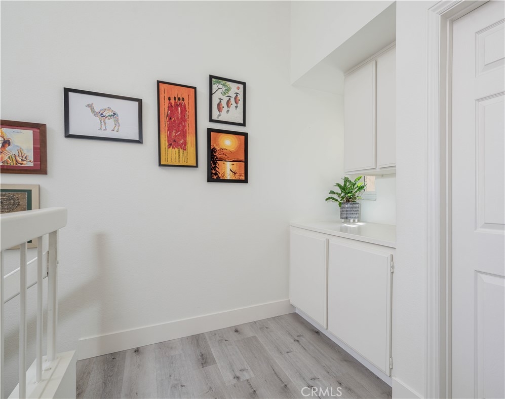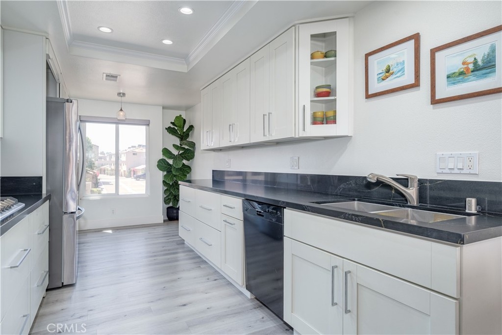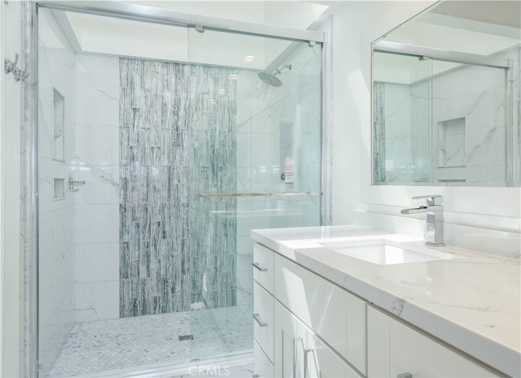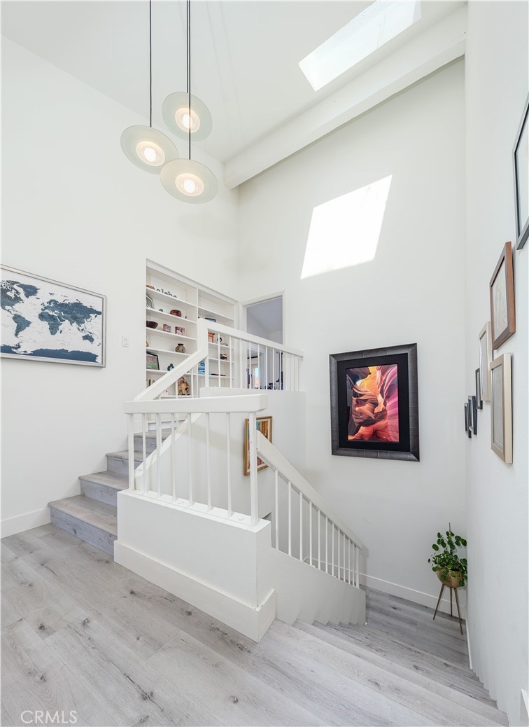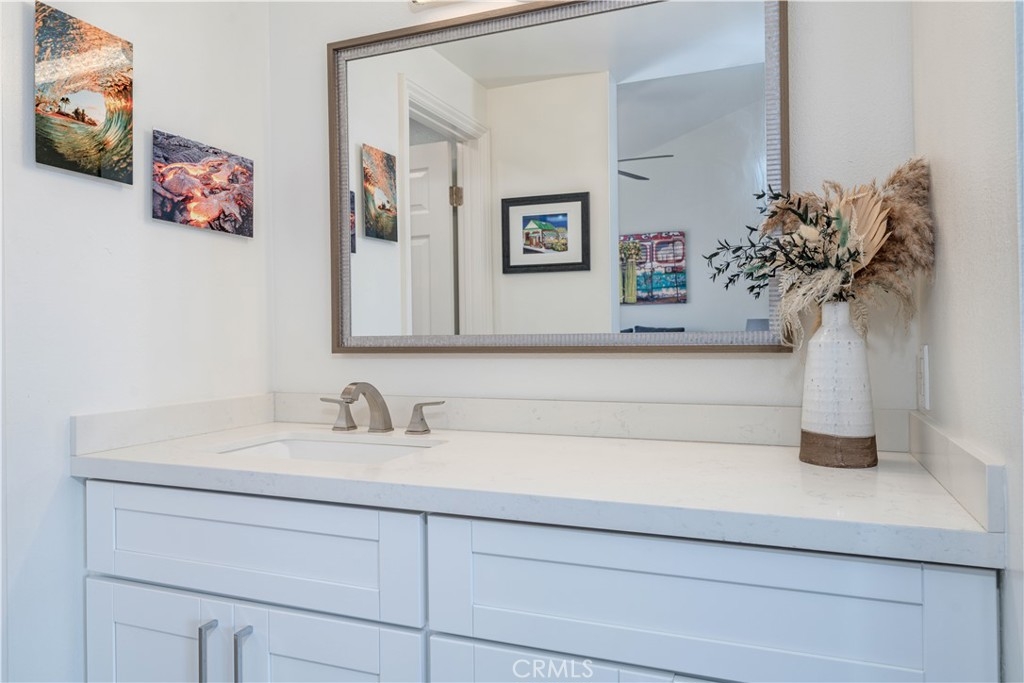 This exquisite 2-bedroom, 2.5-bathroom condo is nestled in the picturesque Broadmoor Huntington Harbour, a rare gem of a waterfront community just a short stroll from the pristine ocean and the serene beaches along the bay. The residence showcases a wealth of upscale upgrades, featuring stunning vinyl plank flooring that flows seamlessly throughout the space, complemented by remodeled bathrooms adorned with solar tubing, elegant vanities, and contemporary fixtures. With its soaring cathedral ceilings, the condo is bathed in natural light, creating an inviting and airy atmosphere. The kitchen is a true culinary delight, boasting expansive quartz countertops, premium cabinetry, and a sleek stainless steel oven alongside a gas stovetop, perfect for the aspiring chef. Enjoy your morning coffee or a quick bite in the charming breakfast nook, which provides a cozy spot to savor meals. The kitchen effortlessly transitions into the dining area and a spacious living room, which invites you to unwind and enjoy the ambiance. Sliding doors lead to one of two balconies, where you can revel in delightful peek-a-boo views of the harbor. On the main floor, you'll discover a convenient powder room and a well-appointed full-size laundry room, enhancing the functionality of the space. Ascend to the upper level, where the dual master suites offer the ultimate in privacy and comfort. The primary suite is a retreat, featuring two expansive closets and its own private balcony that showcases glimpses of the harbor and ocean. The primary bathroom is a spa-like sanctuary, complete with an additional closet, a custom shower adorned with "rain drop" tile, a sleek, clear glass enclosure, and quartz countertops with double sinks. A skylight positioned above the shower invites natural light, creating a bright and airy space. The secondary suite is equally impressive, with a beautifully remodeled en-suite bathroom with a new vanity and a stunning porcelain-tiled shower that adds a touch of elegance. Additional highlights include a spacious two-car garage with ample storage space, plenty of guest parking, and a secure 24-hour guarded entry. This enchanting harbor community offers a resort-like atmosphere, featuring a scenic canal that winds throughout, a newly upgraded pool and spa area, and tennis and pickleball courts. Within walking distance, you'll find Mother’s Market, Starbucks, and convenient access to the harbor, making it the ideal location for both relaxation and recreation.