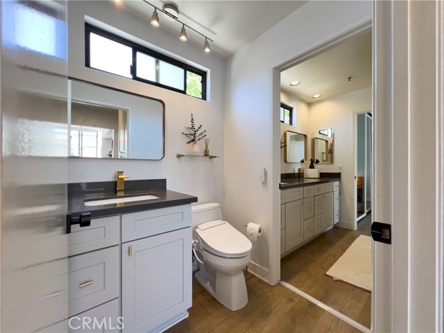 This is literally checking ALL THE BOXES! Outstanding opportunity to own this remodeled and modernized, 2-bedroom, SINGLE-STORY UPPER END UNIT. Located in highly desirable Brookstone -Huntington Beach. Flooded with natural light this open floor plan features engineered oak plank flooring , vaulted ceilings , a cozy fireplace and updated light fixtures . Enjoy the newly redesigned kitchen with Quartz counter tops, new cabinets and breakfast bar. This home has a spacious living room with large dual pane windows with custom window covering and a slider to the large sunny patio perfect for entertaining . Fully remodeled baths include new cabinets, countertops, toilet , mirrors and lighting. The primary bedroom features , generous closet space, recessed lighting, ceiling fan and access to a 2nd balcony . Additional features are smart home devices such as Ecco home thermostat and convenient indoor laundry . This rare unit has a single car garage with EV charging plug AND an additional parking space. Brookstone truly is a hidden gem, HOA pays internet and cable, very well maintained community with newer roofs , recently recoated decks ,newly paved streets a sparkling pool . All just a short bike ride to Pacific City and one of Californias best beaches.