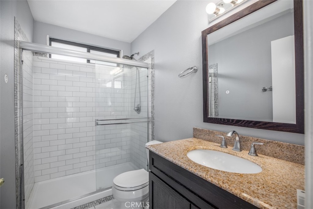 Experience the ultimate Huntington Beach lifestyle in this stunning 2-bedroom, 2-bathroom condo situated in the sought-after Brookstone community. The well-designed end unit layout features two master suites, each with its own private bathroom and walk-in closet. High ceilings, recessed lighting, and fresh contemporary paint colors create a spacious and sophisticated ambiance throughout. This condo features a remodeled kitchen with upgraded countertops, custom cabinetry, stainless steel appliances, and recessed lighting. HUGE private patio. Double-pane windows and doors, a newer water heater, and a renovated master bathroom. Additionally, the interior laundry room includes a washer and dryer for your convenience. Parking is ample with a detached garage and an additional dedicated parking space. The spacious patio, accessible from both the living area and master bedroom, is perfect for outdoor entertaining and relaxation. Residents can also enjoy the HOA amenities, including a pool and hot tub, all with low HOA dues. This move-in ready condo is conveniently located just minutes from Huntington Beach's beaches, Pacific City, Bella Terra, and provides easy freeway access. Don’t miss out on this fantastic opportunity to own a beautifully upgraded home in a prime location.