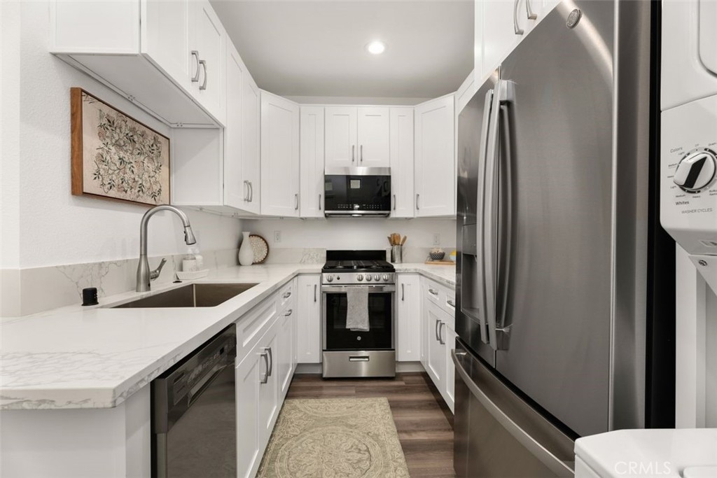 Live a fun filled resort life style in this one bedroom plus loft (could be used as bedroom #2) in fabulous Cabo Del Mar! Also included is a rare large bonus room off the loft, that could be used as an office, yoga retreat, game room, or walk-in closet. Complete top to bottom remodel with brand new kitchen, bathroom, flooring, windows, sliders, paint, fixtures, and brand new appliances including stackable washer/dryer. You name it, its been done. Excellent location within Cabo Del Mar overlooking a wooded grassy greenbelt. Easy stroll or roll to the Bolsa Chica Wetlands Nature Preserve. Community amenities include a clubhouse, pool/spa, sauna, indoor racquetball, and tennis court. It doesn't get any sweeter than this!