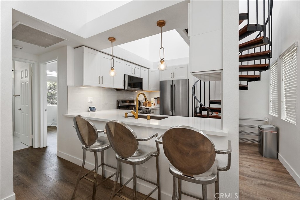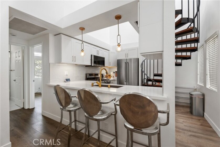 Immaculately upgraded. Come and enjoy a relaxed coastal setting where day to day convenience meets the ease of beachside living. This 2 bedroom/2bathroom home has been refreshed and thoughtfully upgraded throughout, reflecting a level of care that’s immediately felt the moment you enter inside. Every improvement has been made with intention, blending modern convenience with refined craftsmanship. Kitchen cabinets, bathrooms, flooring, and lighting have all been upgraded, creating a cohesive and elevated living experience. In the bathrooms, the vanities and expertly executed, floor-to-ceiling tile showers deliver a clean, polished look. The primary shower is designed for a spa-like experience, featuring dual shower heads and handheld fixtures for added convenience. Living spaces are enhanced by smart home features, including appliances, lighting, ceiling fans, and entry access, offering both efficiency and safety. Underfoot, luxury vinyl plank flooring remains in pristine condition, paired with a sound dampening barrier that adds a noticeable sense of quiet and comfort. The stairs showcase upgraded solid hardwood steps anchored by the modern black staircase, creating a strong architectural statement. Additional details, including reinforced closet storage for heavier items, fresh interior paint, upgraded lighting fixtures, and custom framing around skylights, further demonstrate the depth of quality and thought throughout. Outside you're just moments from the sand and the charm of Main Street Seal Beach, where boutiques, inviting cafés, and intimate dining create a true small town coastal atmosphere, and only a short drive to the vibrant energy of Huntington Beach with its renowned restaurants, entertainment, and shoreline activity. Move effortlessly between a relaxed beachside setting and a more dynamic coastal experience, all within minutes of home. This is an absolutely stunning turnkey home in a location perfect for all lifestyles. This one should not be missed.