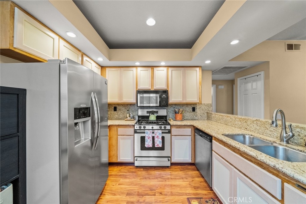 Welcome to this charming 2-bedroom, 2-bathroom corner unit condo in the highly desirable Cabo Del Mar community of Huntington Beach, CA. With an inviting interior, modern amenities, and a serene outdoor patio space overlooking blooming jacaranda trees, this property offers a perfect blend of comfort and coastal allure. Step inside this sunlit residence to discover an ideal floor plan that maximizes space and functionality. The open-concept living and dining area exudes a warm ambiance, perfect for relaxing or entertaining guests. The well-appointed kitchen features modern appliances and ample cabinetry. Convenience is a priority with interior laundry and two dedicated side-by-side parking spaces just steps from the front door. The condo enjoys close proximity to major freeways, shopping centers, dining options, and excellent schools, making it an ideal location for both commuters and families. You can also enjoy the perks of Cabo Del Mar's community including the pool, spa, sauna, racketball, tennis courts, and clubhouse. Situated in Huntington Beach, "Surf City USA," you'll have easy access to the renowned sandy beaches, picturesque sunsets, and a plethora of outdoor activities. Whether you're an avid surfer, a beach lover, or simply enjoy the coastal atmosphere, this location offers the ultimate beachside living experience. Embrace the Huntington Beach lifestyle with easy access to sandy beaches and outdoor activities. Don't miss this opportunity to own a beachside retreat in Surf City USA. Don't miss out on making this seaside oasis your home.