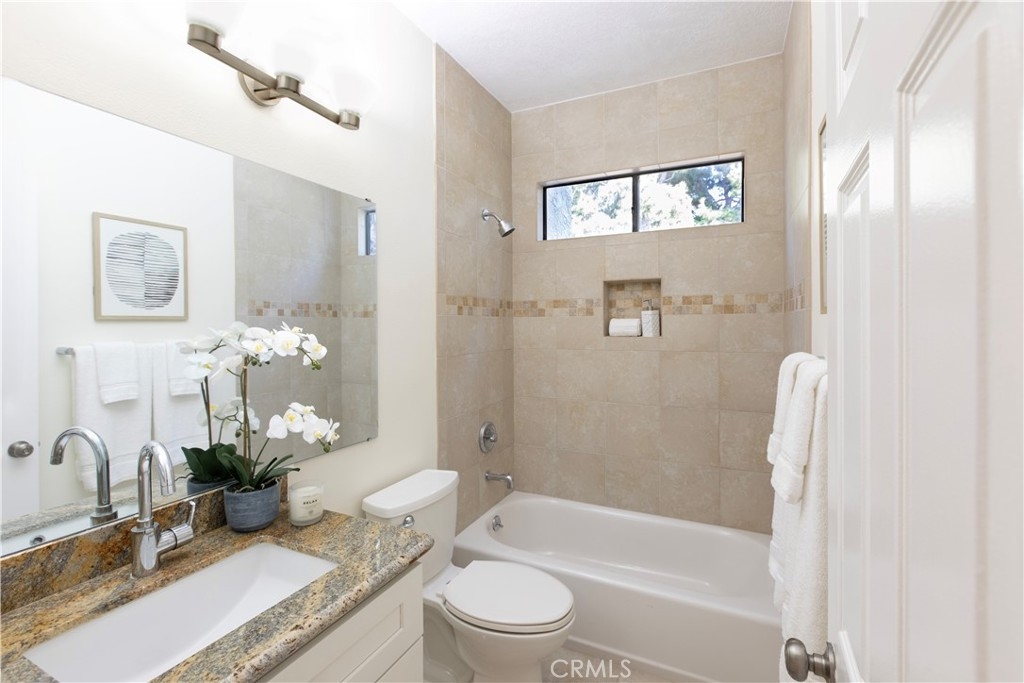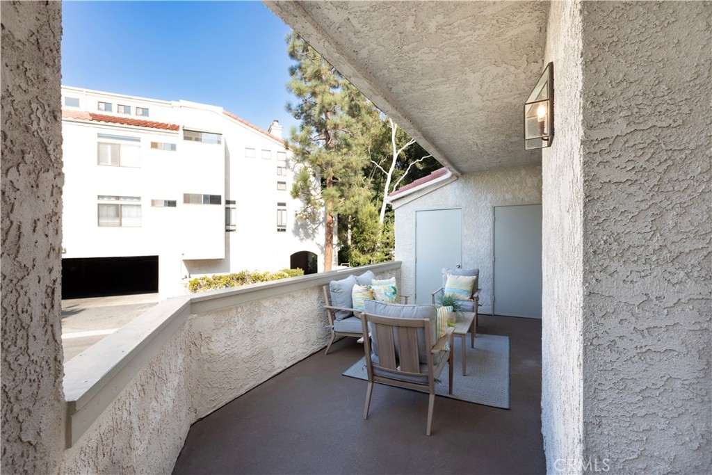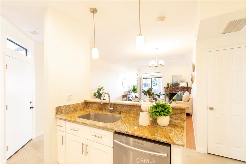 Discover this delightful 2-bedroom, 2-bathroom corner condo in the sought-after Cabo Del Mar community of Huntington Beach, CA. Offering a perfect mix of comfort and coastal charm, this home features an inviting interior with modern upgrades and a tranquil outdoor patio overlooking blooming jacaranda trees. Inside, the sun-filled layout is designed for both space and functionality, with an open-concept living and dining area that’s ideal for relaxation or entertaining. The kitchen has been completely remodeled with beauitul white shaker cabinets and granite counter tops. Kitchen is equipped with newer stainless steel appliances and plenty of cabinet space. Both large high ceiling bathrooms have been recently remodeled with newer vanity, sink and gorgeous shower tile. Additional conveniences include in-unit laundry and two side-by-side parking spaces located just steps from the front door.. The community of Cabo Del Mar has a pool, jacuzzi, sauna, tennis court and clubhouse. Open landscaping areas with grass and trees and easy walk to Brightwater/Bolsa Chica walking trails. Whether you’re a dedicated surfer, a beach enthusiast, or someone who loves the coastal vibe, this location offers the perfect beachside living experience. Enjoy the Huntington & Sunset Beach lifestyle with effortless access to sandy shores and a variety of outdoor activities.