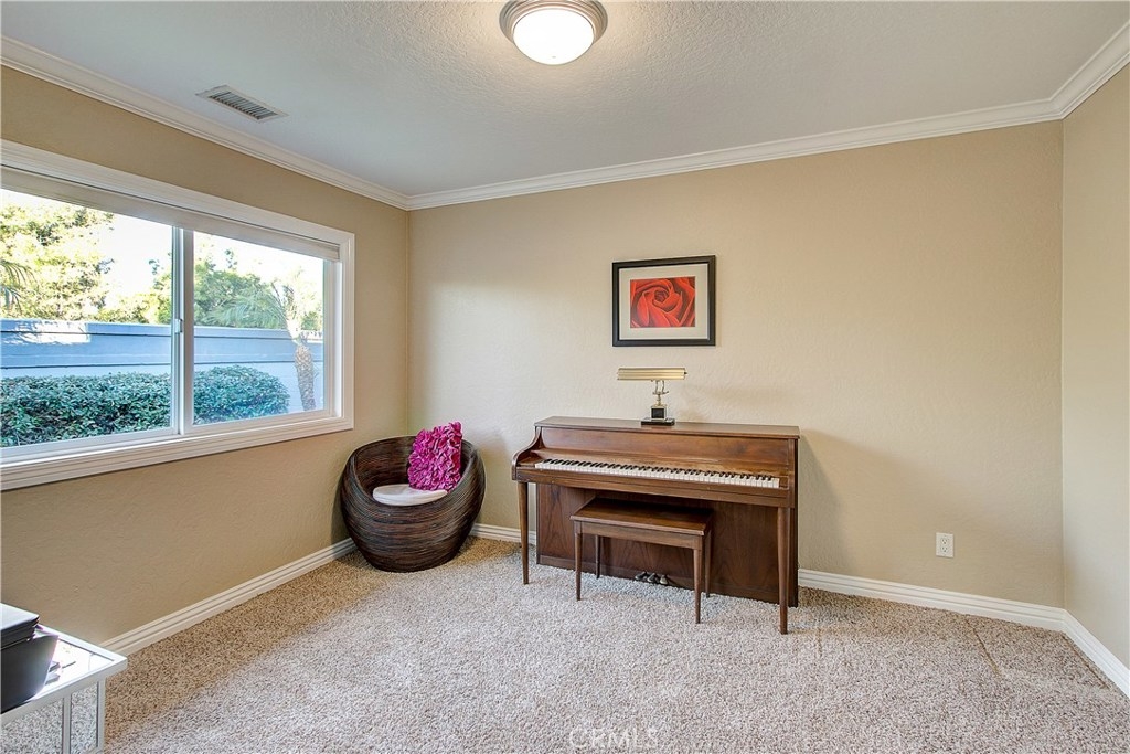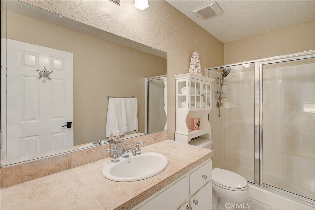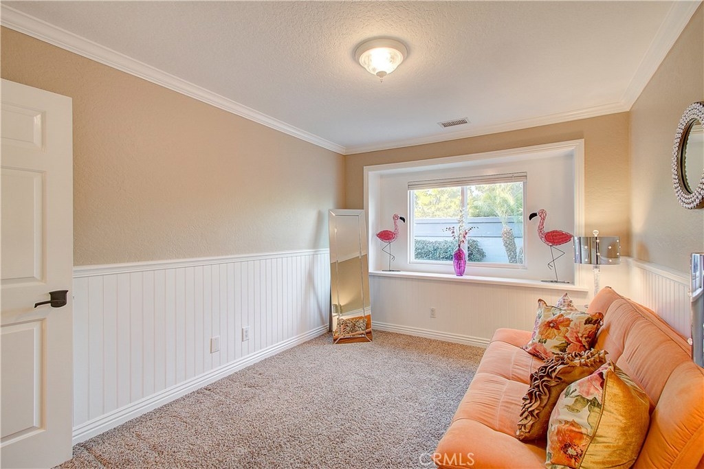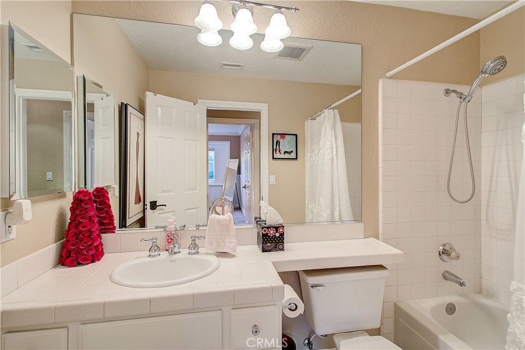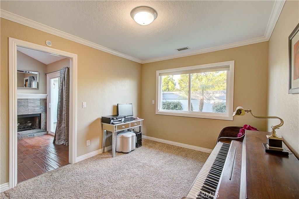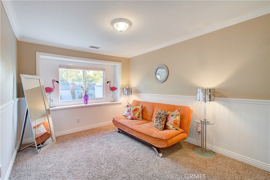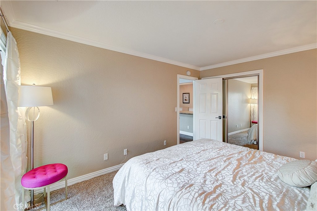 Bright and open, single-level condo located in the Capewoods community, just minutes from downtown Huntington Beach. Warm distressed wood floors, upgraded baseboards and modern paint colors throughout complement the bright and open floorplan. Enter into the open and inviting living room featuring vaulted ceilings, a light-catching skylight, cozy fireplace and sliding doors to the backyard. An adjacent den features crown molding and is perfect for use as an office or bonus room and features a neighboring closet that was used as a wine storage. The living room opens to the kitchen well-appointed with fresh white cabinets, granite counters, recessed lighting and a light-catching skylight. The kitchen opens to the breakfast nook adorned with wainscoting. The master bedroom features crown molding, dual closets, sliding doors to the backyard and an en-suite bathroom with a walk-in shower. Down the hall, the secondary bedroom is generously sized, features wainscoting and is adjacent to the full hall bathroom. Additional features include A/C and a convenient two-car attached garage with laundry room and custom cabinetry inside. Relax or entertain in the upgraded backyard featuring a stacked stone BBQ island, putting green and stacked stone raised planter. Enjoy the nearby community pool and spa.
