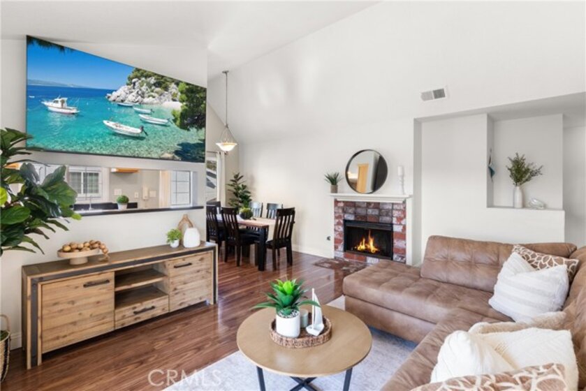 Welcome to your Huntington Beach haven! This bright and airy 2-bedroom, 2-bath condo has it all: soaring ceilings, a cozy brick fireplace, and an open floor plan that flows effortlessly onto a private deck, perfect for morning coffee or evening relaxation. The upgraded kitchen shines with a gas stove, built-in microwave, ample drawers, and plenty of storage for all your culinary adventures. Retreat to the spacious primary suite with a walk-in closet and dual-sink ensuite, while the second bedroom boasts mirrored closets, a ceiling fan, and lots of natural light. Just steps away, a separate bonus room with its own entrance, window, and door makes a perfect home office, studio, or extra storage space. Additional perks include brand new dual pane windows and sliding doors, and interior laundry area with overhead storage cabinetry. Enjoy 2 covered side-by-side parking spaces in a gated garage, guest parking just across, and a secure entrance for peace of mind. The Capewoods community adds low HOA dues, a sparkling pool, spa, and clubhouse. Centrally located near shopping, restaurants, Huntington Central Park, and just minutes from Huntington Beach Pier, this condo is a dream starter home or investor gem. Style, comfort, and convenience all wrapped into one inviting package!