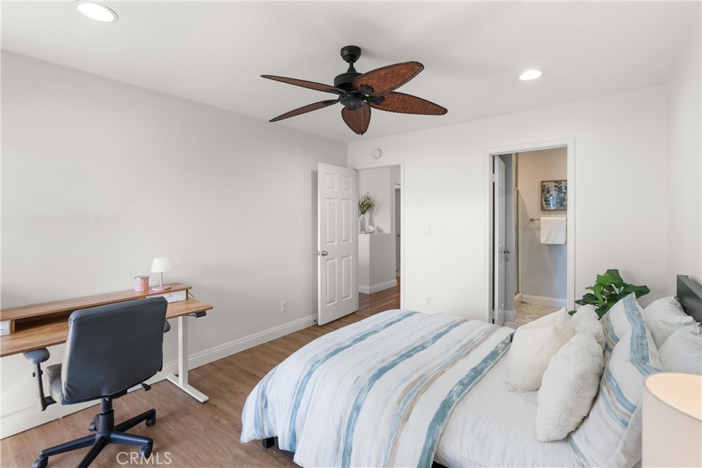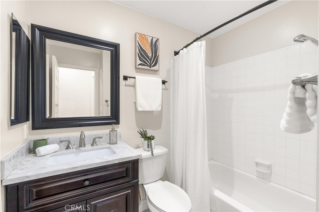 Welcome to your Huntington Beach haven! This bright and airy 2-bedroom, 2-bath condo has it all: soaring ceilings, a cozy brick fireplace, and an open floor plan that flows effortlessly onto a private deck, perfect for morning coffee or evening relaxation. The upgraded kitchen shines with a gas stove, built-in microwave, ample drawers, and plenty of storage for all your culinary adventures. Retreat to the spacious primary suite with a walk-in closet and dual-sink ensuite, while the second bedroom boasts mirrored closets, a ceiling fan, and lots of natural light. Just steps away, a separate bonus room with its own entrance, window, and door makes a perfect home office, studio, or extra storage space. Additional perks include brand new dual pane windows and sliding doors, and interior laundry area with overhead storage cabinetry. Enjoy 2 covered side-by-side parking spaces in a gated garage, guest parking just across, and a secure entrance for peace of mind. The Capewoods community adds low HOA dues, a sparkling pool, spa, and clubhouse. Centrally located near shopping, restaurants, Huntington Central Park, and just minutes from Huntington Beach Pier, this condo is a dream starter home or investor gem. Style, comfort, and convenience all wrapped into one inviting package!