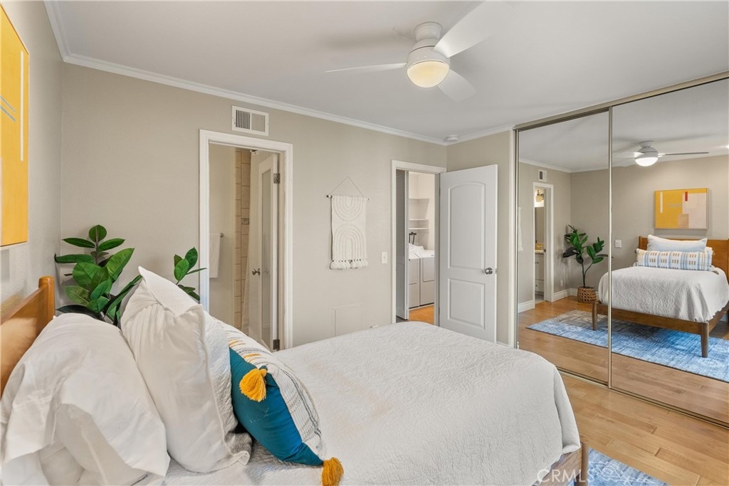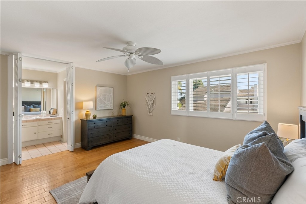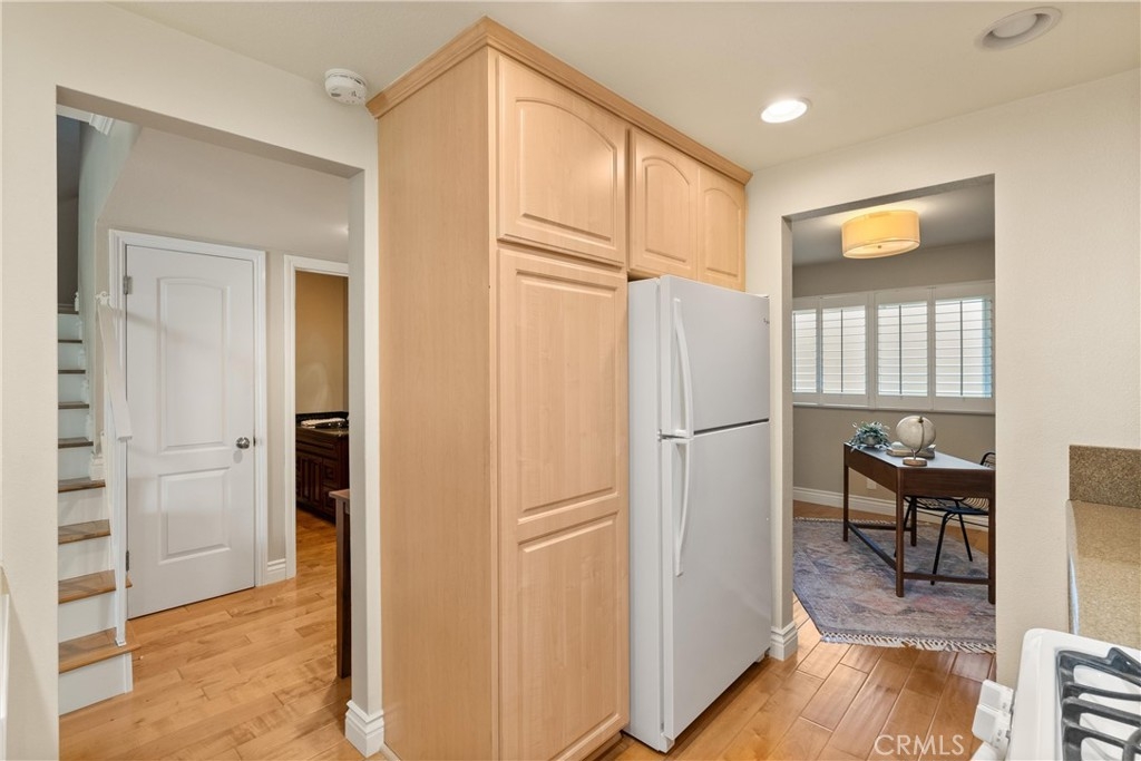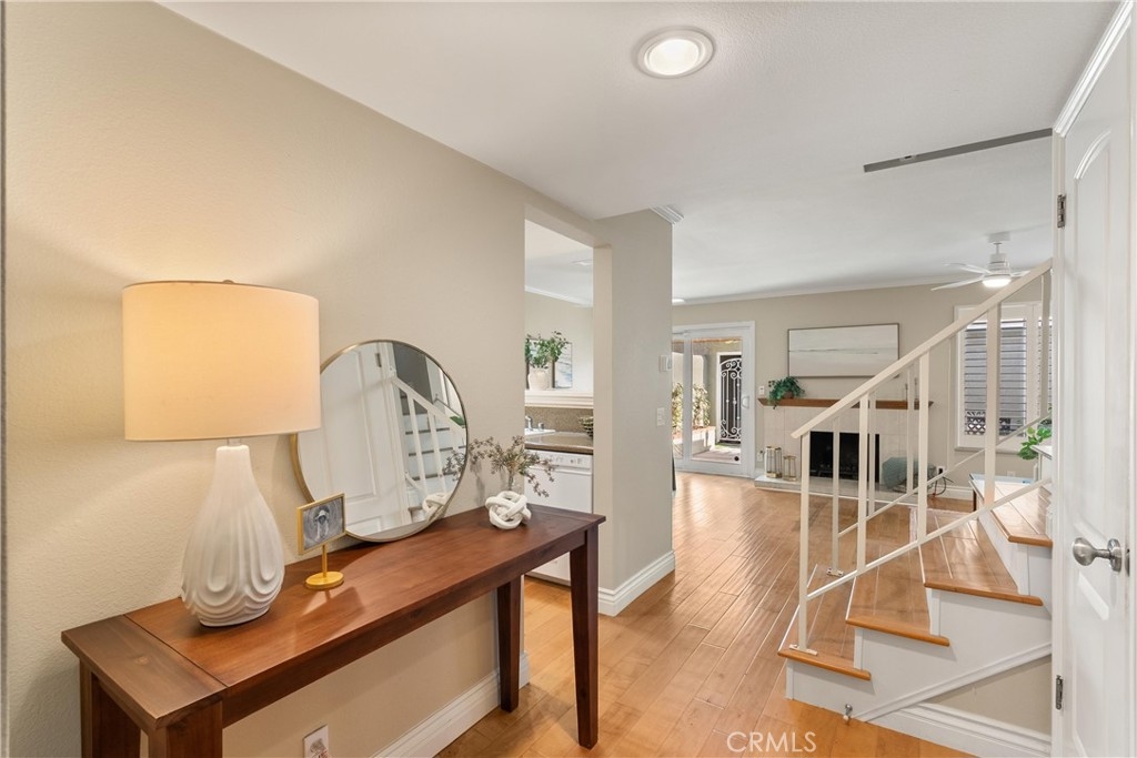 Are you looking for an amazing home in Huntington Beach? If so, this is the property for you! Located in the highly sought after Cherrywood community, 18781 Heavenwood Circle is a 1,230 square foot 3 bedroom/ 2.5 bathroom condominium that stands out from the rest. Upon walking in the front door you are greeted with a warm and inviting entry way that leads you into the spacious living room complete with a cozy fireplace and plenty of room for all of your furnishings, as well as all of your day-to-day living, and entertaining needs. Just off of the living room you will find an open dining area, complete with a pass through window to and from the kitchen, a sliding door that leads you to a private outdoor oasis, and plenty of room for your dining table. The kitchen features a spacious layout with a dishwasher, stove/oven, microwave, refrigerator, and plenty of gorgeous cabinetry and countertops so storage and counter space will never be an issue. Moving along the downstairs you will find an upgraded half bathroom, as well as a bedroom that is currently set up as a home office. (Can easily be converted back to a traditional bedroom). As you go up the gorgeous staircase you are welcomed to the second level of the home that features an in-home laundry area, as well as 2 additional spacious bedrooms, which are dual primary bedrooms that feature their own en suite full bathrooms, large closets, and a balcony. The entire home features gorgeous hard wood flooring, smooth ceilings (no popcorn), designer paint, ceiling fans, recessed lighting, energy efficient double pane vinyl windows, plantation shutters, and much more. As you exit the home from the back, you will find a spacious private patio with plenty of room for all of your living and entertaining needs that separates the home from the private 2 car garage. The Cherrywood community is well known for its immaculately maintained lawns and landscaping, the gorgeous community pool, jacuzzi, and clubhouse, the plentiful guest parking, and the great people that live in the homes. It is truly the kind of neighborhood you would dream about living in. In terms of location, the home is primely located near shopping, dining, entertainment, the beach, major transit, freeways, golf, parks, and much more. I'm telling you, it just doesn't get any better than this, especially at this price point! Hurry, and don't miss out on this great home. Trust me, you will be sorry if you do!