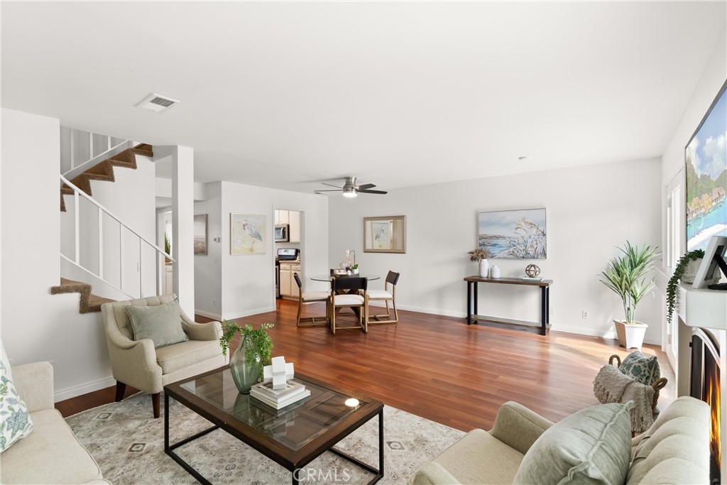This charming Cherrywood Village home offers a perfect blend of coastal living and modern comfort. This 3 Bedrooms, 2.5 baths, 1,269 sq.ft. home with 2 car garage is in an interior location and close to greenbelt areas, clubhouse and pool. This much sought after development is approximately 3 miles from popular world class Huntington Beach “Surf City”. Step inside the recently freshly painted and updated interior of this very livable home. A spacious living room with a fireplace leads to a large patio to enjoy the cool Huntington Beach refreshing air, ideal for entertaining and relaxation. The gourmet kitchen features new lighting, refrigerator and new dishwasher. Brand new carpet to the upstairs 3 good size bedrooms. The primary suite boasts 2 closets, one is a walk-in closet. The 2nd bedroom with a custom slider door to the private balcony, ideal to relax on and enjoy your morning coffee or read your favorite book. A convenient upstairs laundry area with washer, dryer and storage cabinets completes the home. The home features vinyl plank flooring, dual pane windows, smooth ceilings, interior freshly painted, raised panel doors, ceiling fans. A 2 car detached garage adjoins the spacious patio to the living area of the home. Residents have access to community clubhouse, pool and spa. Cherrywood Village is a perfect location in close proximity to many fine dining restaurants, shopping options, schools, entertainment, and a short bike ride to fabulous beaches. Move-in ready! If you are ready for Coastal living this is your opportunity at an affordable price.