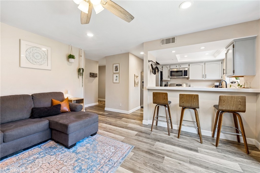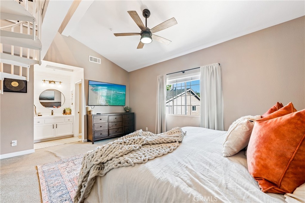 Welcome to this beautiful turnkey 2-bedroom, 2.5-bath condo nestled in the vibrant city of Huntington Beach. Spanning 1,330 square feet, this condo exudes a casual and inviting ambiance, blending farmhouse charm, soothing colors, and an open concept floorplan that radiates warmth and comfort. As you step inside, the living spaces are bathed in an abundance of natural light, creating a welcoming and relaxed atmosphere. The open concept design effortlessly connects the living and kitchen areas, offering a seamless flow for entertaining guests or enjoying quality time with loved ones. Step outside to the inviting outdoor living space, where you can effortlessly host gatherings or simply unwind in the laid-back Southern California climate. Upstairs, you'll find two primary retreats, each with its own unique appeal. The first primary bedroom features vaulted ceilings, an en suite bathroom, and a generously sized walk-in closet, providing a cozy sanctuary for rest and rejuvenation. The harmonious color palette and natural elements add to the soothing ambiance, making this a tranquil escape after a long day. Ascend the spiral staircase to the versatile loft area, which currently serves as a cozy movie night spot but can easily transform into a home office, yoga studio, or creative space tailored to your desires. The spacious second bedroom is a haven of natural light with vaulted ceilings and a sliding door that opens onto your own private balcony. This space is ideal for sipping your morning coffee, reading a book, or simply enjoying the morning sun. Adjacent to the bedroom, you'll find another full bath adorned with a soothing color palette. From the open concept living areas to the private retreats and versatile loft space, this beautiful condo offers an unparalleled living experience that embraces both relaxation and entertainment. Immerse yourself in the casual and laid-back coastal lifestyle that Huntington Beach has to offer in this exceptional home. See it today!