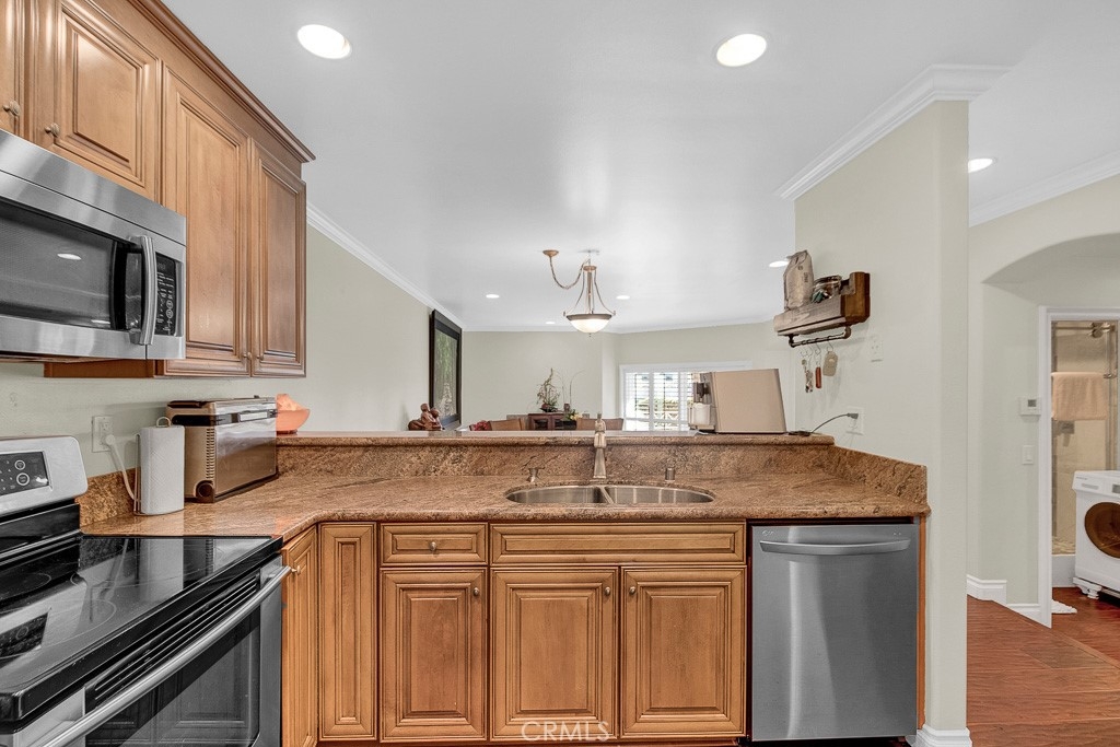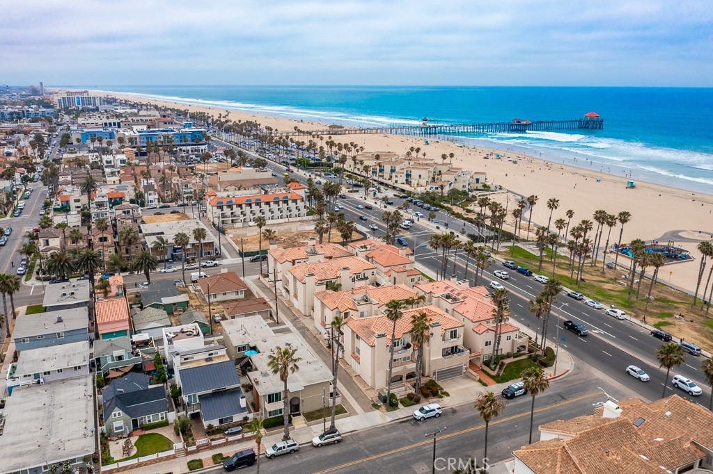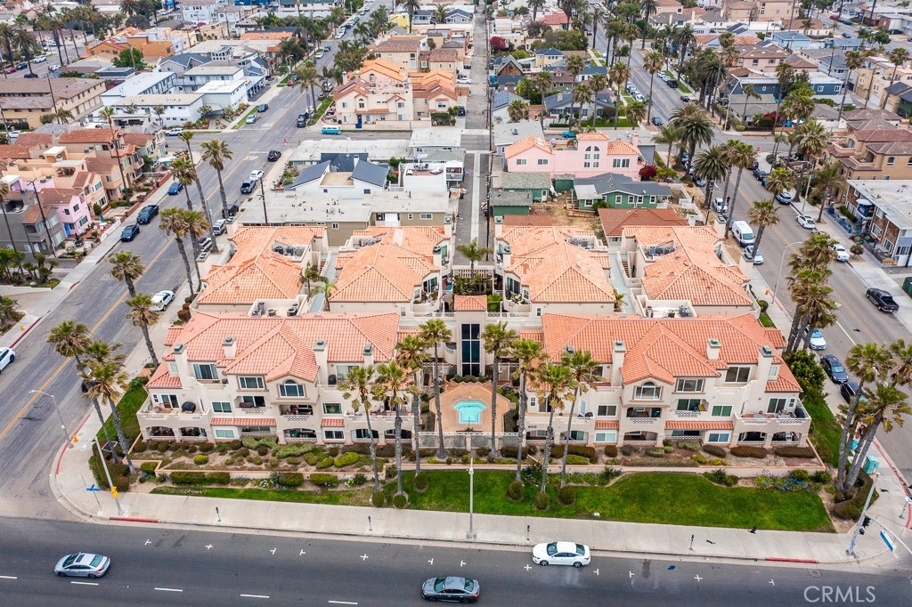 Beautiful, single level, 2 bedroom 1.5 bath first floor condo located across the street from the beach in gated community! Capture the sunsets and check out the surf from this property. Beautiful home comes with wood like flooring in the entry and hallway, an updated kitchen, over sized dining room, and a comfortable living room with a fireplace. Enjoy stainless steel appliances in the kitchen with granite counters and take advantage of the extra built in storage in the dining room. Relax after a day at the beach in the step down living room. Rest your head in this Master Suite with walk in closet. Relax from your private balcony with gas valve for BBQ so you will never run out propane. One secured, underground parking space and an HOA jacuzzi for your convenience. Extra storage space in secured underground garage. Steps to the beach, downtown, pier and Pacific City. Come look today!