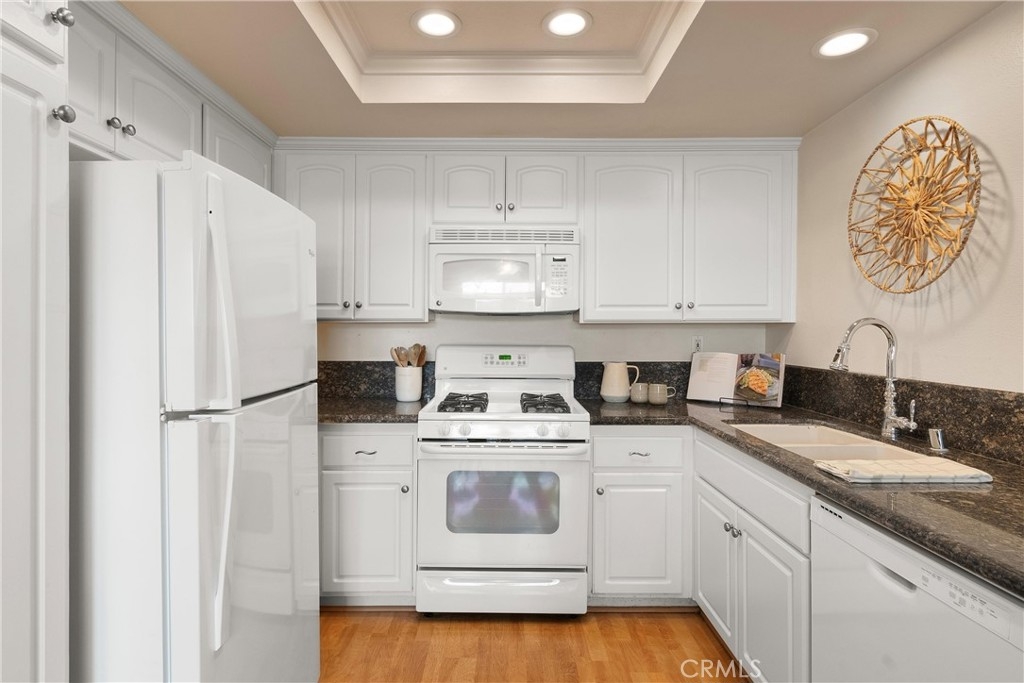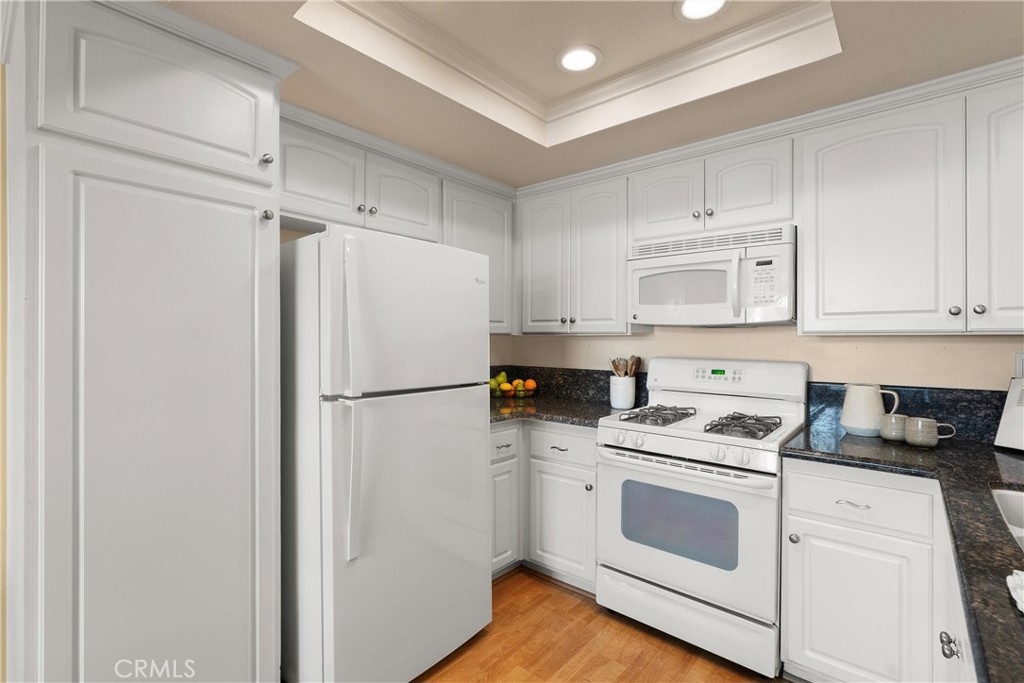 Are you looking for an amazing 2 bedroom condo that is located within minutes of world famous Huntington Beach and Huntington Harbor? If so, this is your lucky day! Located in the highly sought after private guard-gated Gables community, 16115 Warmington Lane features 1,229 square feet of living space spread across an extremely well thought out, and functional, floor plan that feels extremely open and airy. This 2-story condominium features 2 spacious bedrooms (both upstairs), 1 full bathroom (upstairs), and 1 half bathroom (downstairs), as well as a spacious living room complete with a fireplace, recessed lighting, ceiling fan, and plenty of room for all of your furniture. Just off the living room you will find the dining area, complete with a sliding door that leads to the spacious private front patio area, as well as the upgraded kitchen that features gorgeous white cabinetry and granite counter tops. The home features a lot of windows and doors that let in a tremendous amount of natural light and cool breezes. As if that isn't enough, the home also features laminate flooring, brand new carpet, an in-home laundry room (washer and dryer included), an attached 1 car garage with direct access to the home, and room for another car to be parked in the driveway in front of the garage door. The large front patio is a great private space that gives you a tremendous opportunity to enjoy outdoor living. If you open the sliding door, or front door, it is like having additional living space! The Gables community is well known for the security that comes with knowing that the community is gated and guard controlled, as well as the private streets that are well maintained with little traffic, the abundance of amenities such as its pool, spa, BBQ areas, lush green belts and landscaping, and well maintained pride of ownership appearance. In terms of location, it doesn't get any better than this! The home is located within minutes of Huntington Harbor, the beach, major transit, shopping, dining, entertainment, and award winning schools. Homes in this community don't come up for sale very often, and when they do, they are often sold before they even hit the market. Don't miss this opportunity! (Please note that the home is on leased land.)
