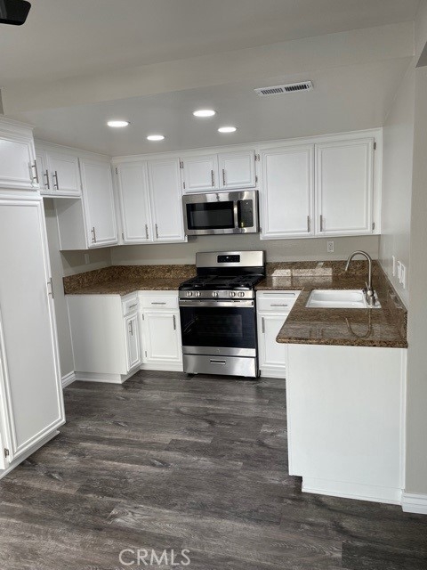 Welcome to the Gables - this well located property is close to Huntington Harbor, and a few minuets to the beach. A light and bright 2 story home with cozy fireplace in the living room. The property has been upgraded and benefits from new laminate flooring in the living room, dining room, hallway, downstairs bath and laundry area. New carpet on the stairs and bedrooms. New paint and baseboards throughout. There are also new switches and plugs also. The bedrooms have high ceilings and mirrored closet doors - adding to the spacious feeling the rooms. The kitchen has refinished cabinets, stainless steel appliances and a new kitchen faucet. A roomy private outside patio area, plus a 1 car garage with room for further parking. The community has a pool, spa, bbq areas and many greenbelt areas to enjoy! Close to all amenities and restaurants. This home located on lease land.