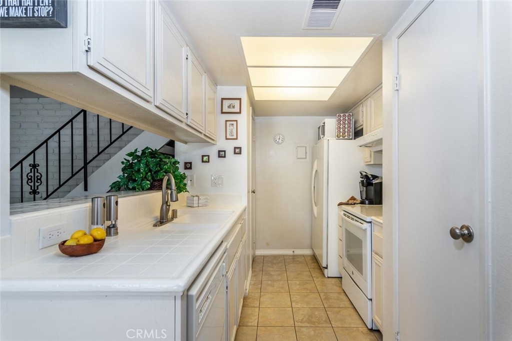Popular 2 story plan at Harbour Heights Villas. Close to Huntington Harbour Mall. Enter Home through a gated private front patio with room for out door dining and an evening Bar-B-Que. The front door opens to the living room and dining areas. Multiple windows for good cross breezes. The kitchen has two pantry closets, tile counters, double sink, electric range/oven, dishwasher and refrigerator are all included. Upper floor includes two bedrooms and a full bath off the hallway. Bath has tub with shower, vanity with sink. One of the bedrooms features a walk-in closet and the other has a mirrored wardrobe for storage. Bedroom doors, bathroom door and heater closet doors are new July 2021. Both bedrooms have just been painted and ceiling texture updated. Garage with storage is shared with neighbor. Each gets one garage parking space and locking storage cabinets alone with a walk in closet for additional storage. Community laundry room next to garage. HOA Pool, clubhouse, Basket Ball court and has community RV Storage that can be used with a nominal fee.