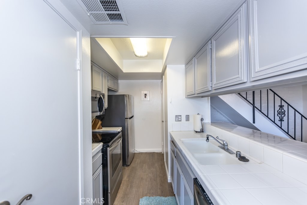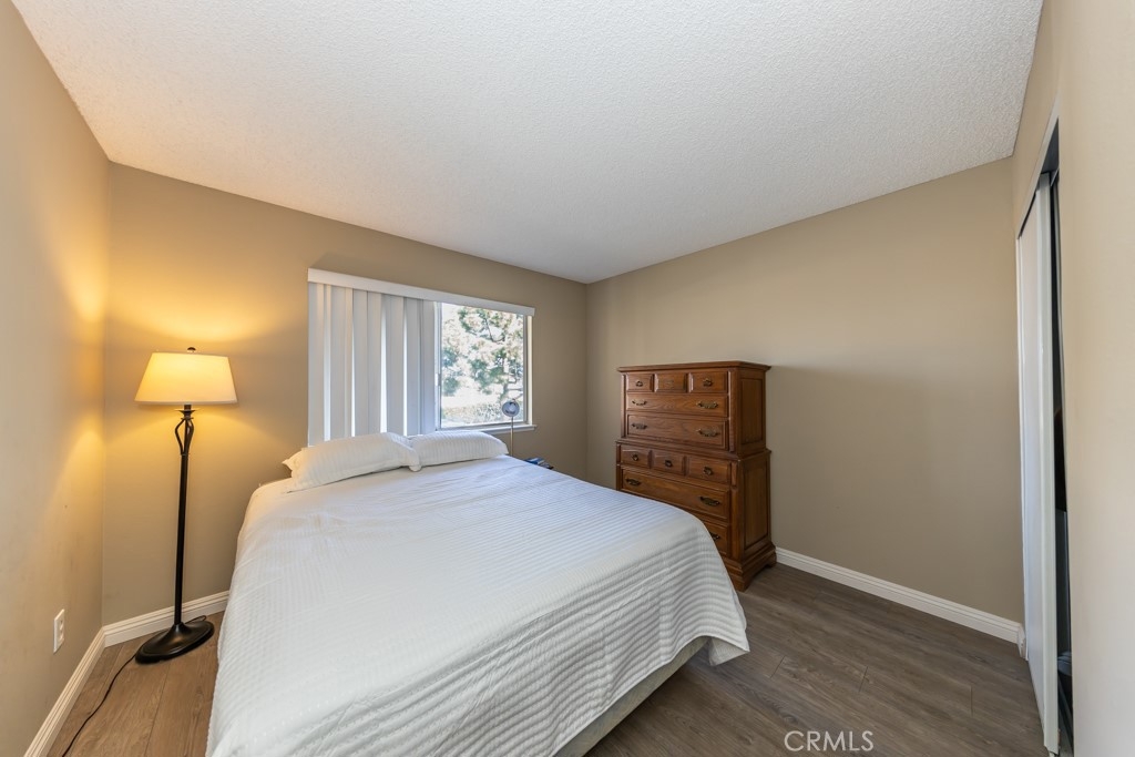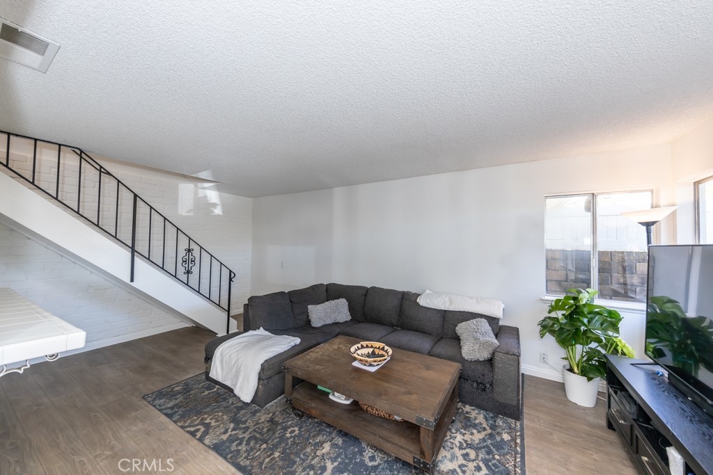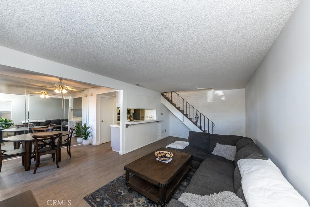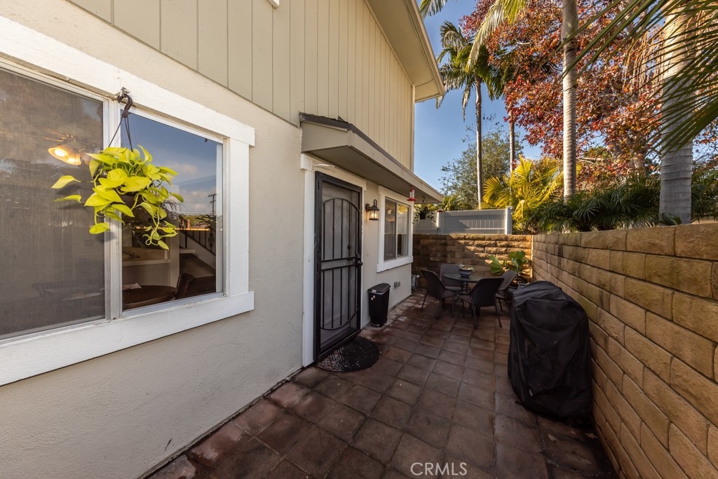 Surf City condo! Close proximity to Huntington Harbour, dog beach and Bolsa Chica State Beach. Approximately 2.4 miles to Pacific Coast Hwy and beach access. Quiet location near the back of the community. Mature trees, side walks and greenery throughout the community. Lovely private entry with brick patio and room for BBQ, outdoor furniture and pet. Two story unit with open and bright floor plan. Two spacious bedrooms upstairs and one remodeled bathroom. Fresh paint first floor living area and kitchen. White textured brick wall and open storage under stairway. Laundry room is outside unit, next to the garage. (shared with 4 units) Two car garage is shared one/half with storage for each owner. Harbor Heights Villas community offers lots of guest parking, community pool, lush walking greenbelts, clubhouse and RV parking space availability through the HOA.