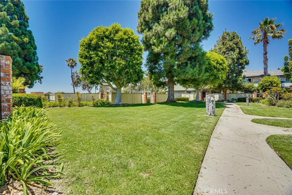 This hidden gem offers plenty of privacy, a single story ground floor end unit with no neighbor above and only one attached wall. As you enter through the front gate you are welcomed by a large wrap around patio leading to the front door. Once inside, the living room boasts a high vaulted ceiling along with a fireplace. The dining room also offers the same high ceiling and has a slider leading to the front patio. The kitchen has a breakfast bar which opens to the dining room. There is an inside laundry room and a full sized guest bathroom located in the hallway. The guest bathroom has a newly re glazed bathtub. The bedrooms are all nice sized and there are walk-in closets in the master and 2nd bedroom. The master bedroom also offers a high ceiling and a slider leading to a private rear patio. The master bathroom has a newly re glazed shower enclosure. Bonus features include: brand new carpeting, vinyl flooring, all new interior paint, scraped ceilings, plantation shutters in one bedroom plus a newer heating and air conditioning system with all new ducting. The attached 1 car garage has direct access and there is also an assigned parking space in the parking lot directly in front of the home. This lovely home is walking distance to award winning schools, several parks, shopping, restaurants, the Harbour and is only 5 minutes from the beach!