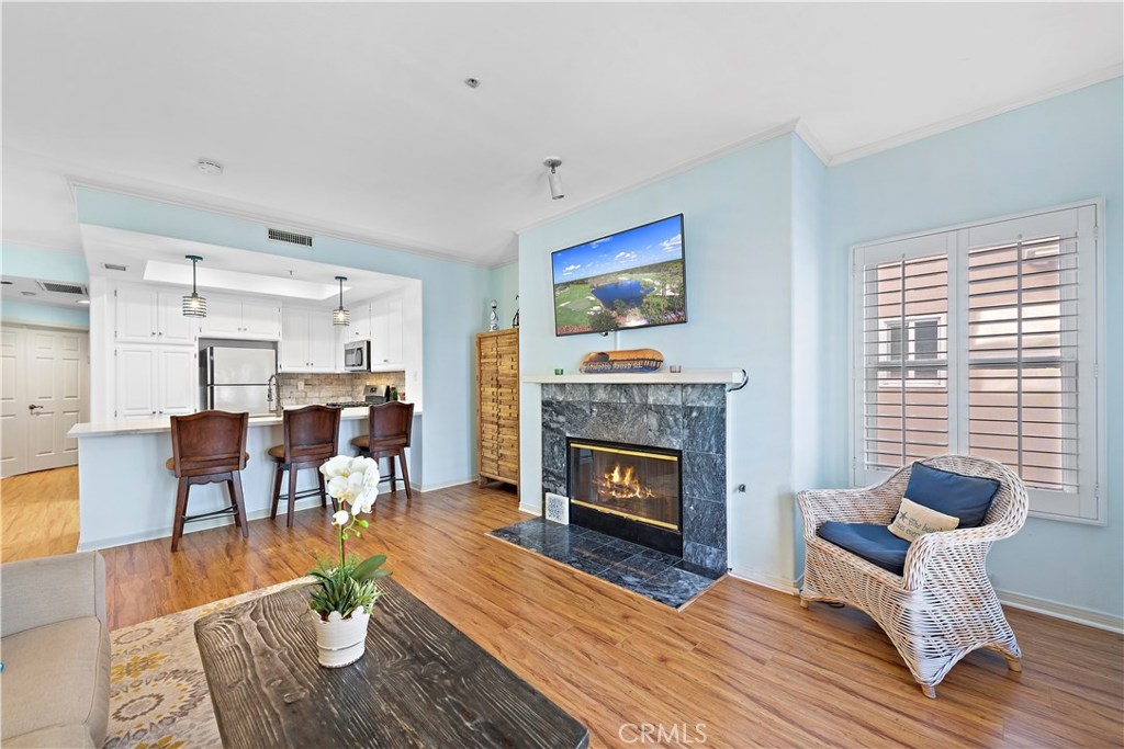Rarely do these properties in the prestigious Harboring Villas become available. This is only the 5th property in the past 5 years to come to the market. Amazing location just steps away to the ocean and short walk to the world famous Huntington Beach Pier, the finest resorts, dining and shopping. Harboring Villas is a quiet and friendly gated complex. Highly desired open concept with the recently remodeled kitchen open to the dining area and family room. The upgraded kitchen features stainless steel appliances, stone counter tops, breakfast bar seating and custom back splash. There are two balconies with side ocean and white water views. Listen to the calming sound of waves and enjoy the ocean breeze right from your balcony. Large family room with custom surround fireplace. The master bedroom offers a walk-in closet with direct access to the full bathroom which features dual sinks, bathtub with shower and dual access. Ample natural light flows throughout the home. Double door entry to the bedrooms, plantation shutters and crown molding brings the home to another level. Model match units have divided the large laundry room into a half bathroom and laundry closet to add a second bathroom to the home. Enjoy the ocean breeze and afternoon sunset. Two assigned parking & community storage in gated subterranean garage with stairs and elevator access. Lots of guest parking and easy street parking. Rare and fantastic opportunity for a first time buyer, investment or vacation home.