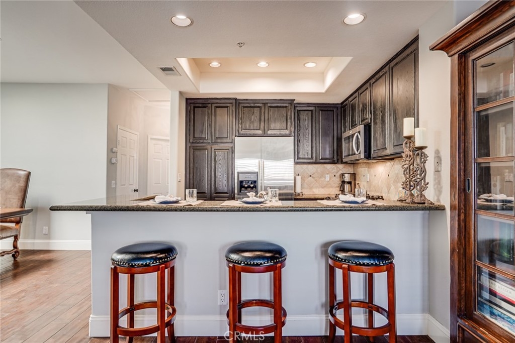 Penthouse Condo with a Peek-A-Boo Ocean View located in Beautiful Surf City USA! Live the beach lifestyle in this amazing 2 bedroom. Enjoy wood floors throughout this one level home. Feel the fresh ocean breeze throughout your open floor plan with vaulted ceilings in all rooms, skylight and fresh paint. Spacious master suite with plantation shutters and oversized closet, leading to an ensuite with dual sinks and oversized tub. This home is light and brite with windows everywhere. The trendy black kitchen has granite counter tops, breakfast bar and overlooks the living space. There is a fireplace in the living room for those chili evenings after a stroll at the beach. From the living room you can view the peek-a-boo view of the ocean. Head out to the patio for more views and seating to enjoy the smells and sounds of the crashing waves. Luxurious community with built in spa and subterranean parking. This unit has 2 parking spaces. You can park you car and take the elevator to the 3rd floor. The location is supreme. Surf the most popular beaches in the world! There are 10 miles of coastline to surf, tan, jog or bike! Huntington Dog Beach starts at Goldenwest and goes to Seapoint. The Huntington Beach Pier is a healthy walk south where you can enjoy restaurants and shopping and so much more!