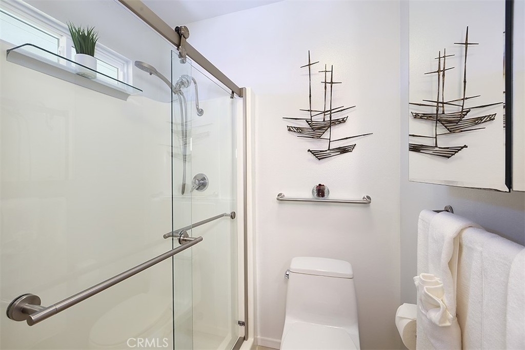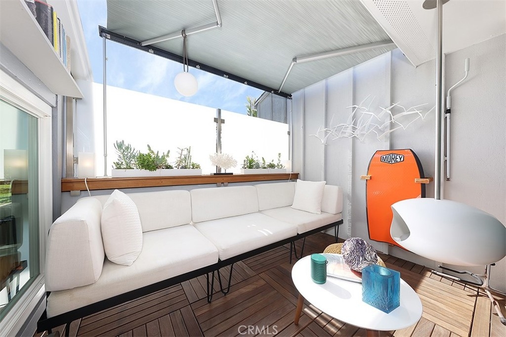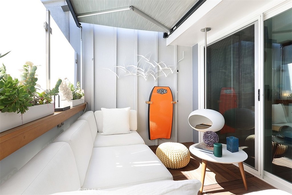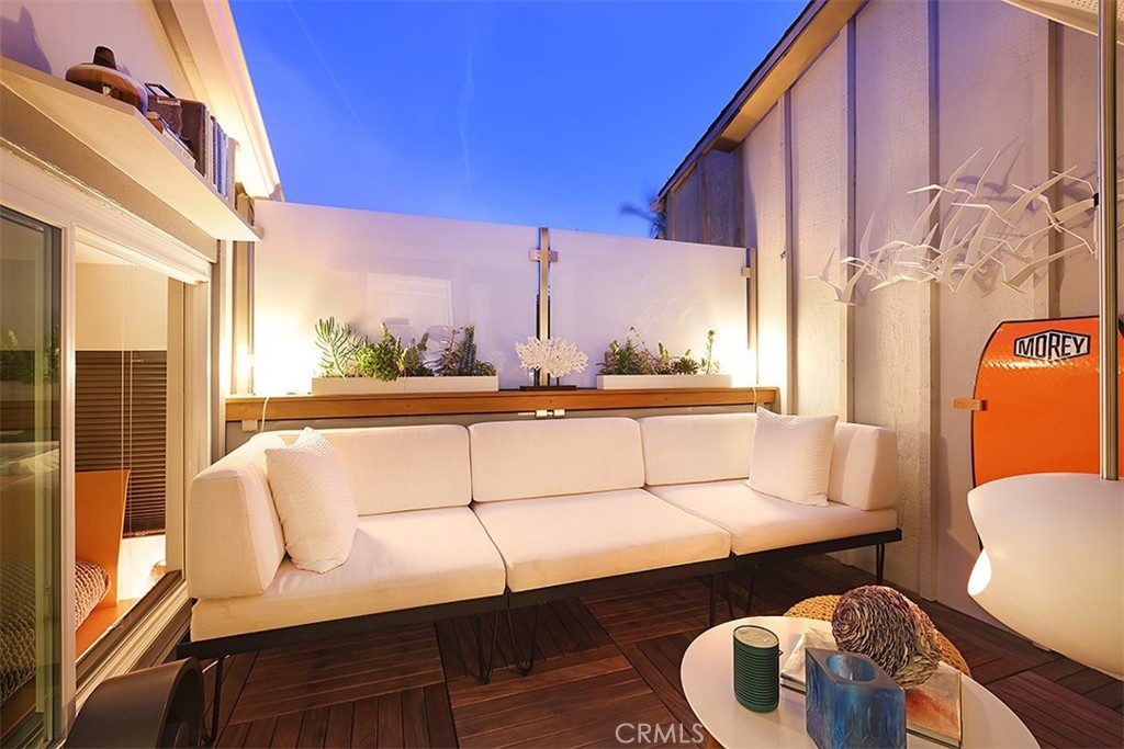 Enjoy the iconic Huntington Beach lifestyle each and every day in this remarkably updated and expertly curated residence situated in the exclusive amenity rich community of Harbour Pacific just steps from Sunset Beach. Every inch of this private, light-filled, top-floor end unit is brimming with desirable features made for seaside living including soaring vaulted ceilings, designer lighting, double pane Anlin windows, remote controlled awning windows, Buster + Punch and LeGrand switches, George Kovacs ceiling fan, and handsome bamboo flooring. Calm your mind to the sound of endless ocean waves as you unwind in the inviting living room with custom bookshelf, and UV protected glass slider opening up to the additional indoor/outdoor lounge with privacy screen, stylish Le Feu fireplace, and retractable Thule awning perfect for sun-ripened HB days. Create a culinary masterpiece in the pristine kitchen with recessed lighting, dual sink, Miele stainless steel dishwasher, and seated bar, or indulge in a candlelight dinner in the dining space with easy outdoor lounge access, perfect for al fresco entertaining. Relax after a picture-perfect day at the beach in the step-down bedroom with custom designed Facet room divider, cozy gas fireplace, and plenty of room for additional furniture and decorations. Additional amenities include laundry with modern LG All-In-One washer/dryer, sink, and ample storage cabinets, as well as electric in-wall heating, reimagined designer bathroom, and Nest smart camera system. Residents of Harbour Pacific also enjoy access to a private beach and launch on Huntington Harbour, sparkling pool, two spas, volleyball court, outdoor showers, one additional parking space (with permit), carport with storage lockers, well-manicured grounds, pet-friendly environment, rental spaces for kayak + paddleboard storage, and car wash area. Located minutes to legendary beaches and surf, Captain Jacks, King Neptune’s, La Cucina, Mother’s Organic Market, Riip Beer Company brewery, Bolsa Chica Wildlife Preserve and State Beach, Huntington Pier, and all the fine dining, nightlife, and entertainment of Huntington Beach, this immaculate turnkey home offers the idyllic beach lifestyle in one of OC’s most desirable locales.