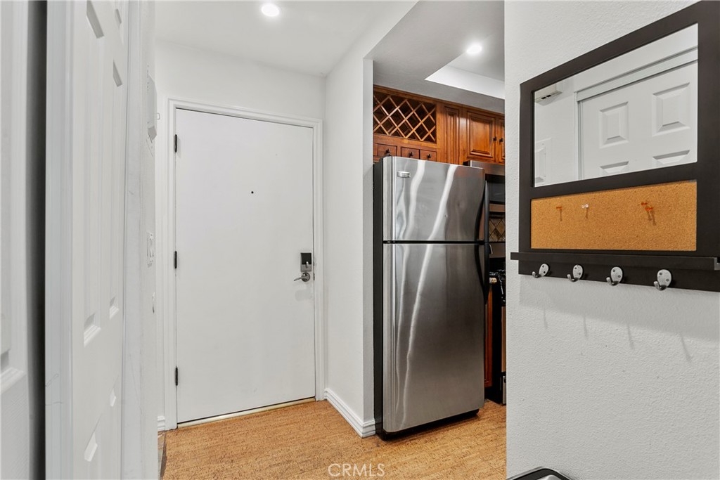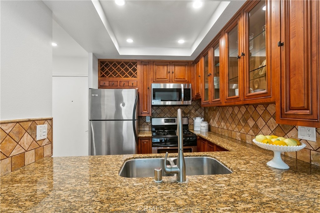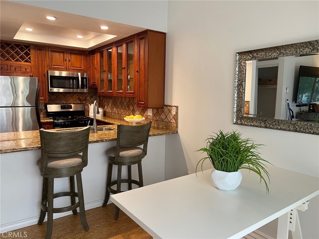 Live the Socal beach dream! Absolutely gorgeous fully furnished upper studio end unit in the "Harbour Pacific" steps to the beach just across PCH. Completely remodeled!!! Gorgeous granite and stainless steel kitchen, custom tile backsplash, recessed lights, glass front upper cabinet doors & wine rack, stainless steel stove, vented microwave, refrigerator, dishwasher and garbage disposal, updated cork flooring throughout the living area, completely remodeled bathroom with custom tiled shower, travertine floors, extra linen cabinets, bright and spacious living area with vaulted ceilings, bedroom area with vaulted ceilings and fireplace, screened balcony area (approx 9' x 7'), 1 carport (#31)with storage cabinets and 1 space permit parking (open spaces), HOA will allow ventless washer/dryer in the unit with approval, HOA has boat deck (wait list), 1 pool and w hot tubs, volleyball court, BBQ area & HOA complex bay access with kayak/boat storage. All furniture included (bed, night stands, sectional couch and table, tv and console, dining area table (can double as work bench) and storage cabinet in the balcony. HOA dues include water, trash, fire insurance and earthquake insurance. Don't miss out!!!