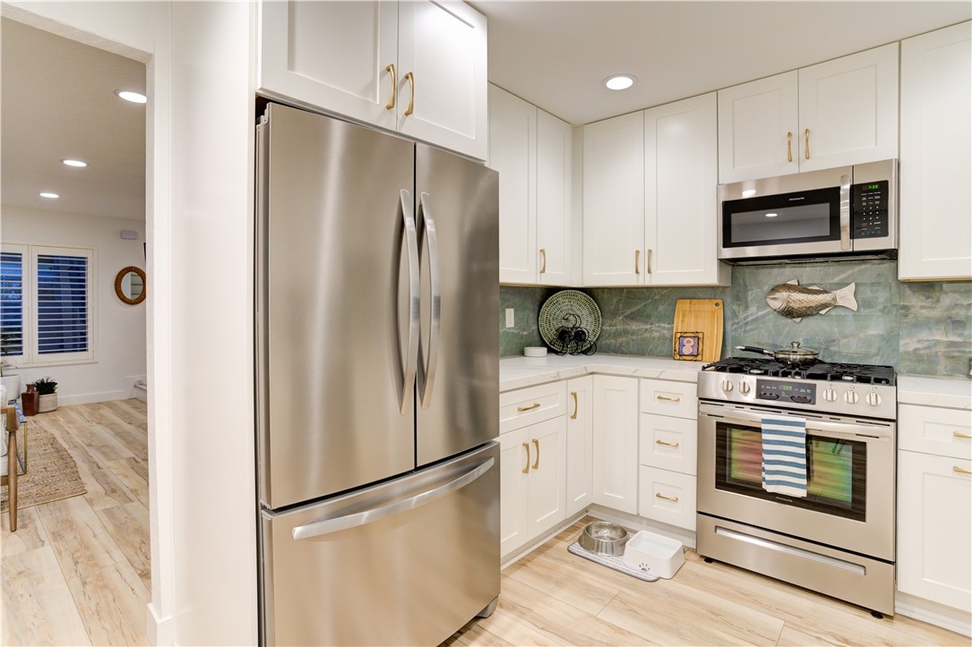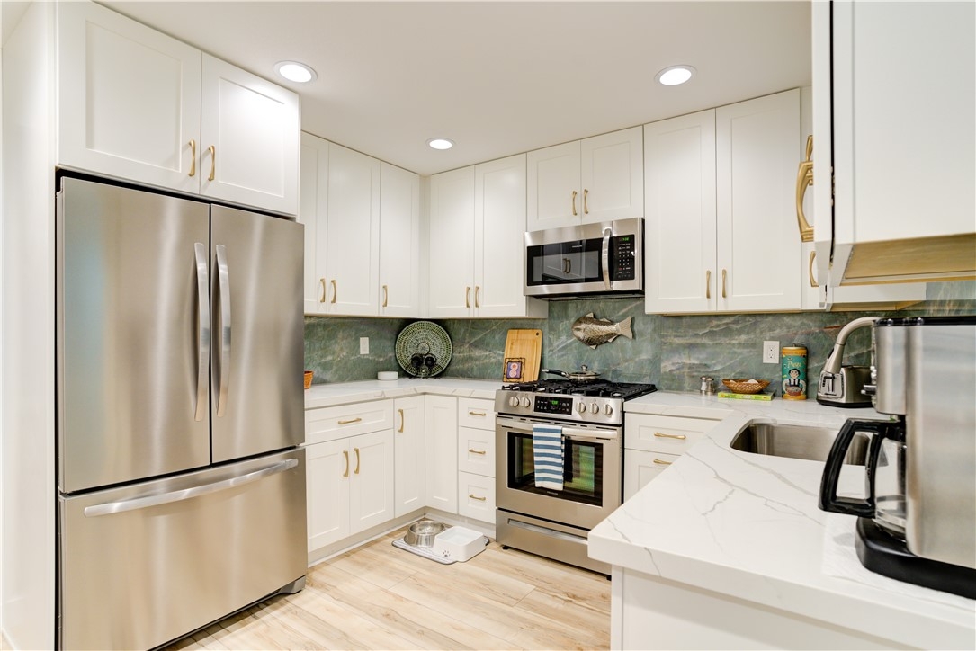 Very desirable Harbour Village Community rarely on the market. Desirable amenities pool, spa, pickle ball and clubhouse. Unit comes a private front patio as well as one off the kitchen. Convenient access to one car garage with washer & dryer lots of storage areas. Home has been completely remodel within in the last year. Some of the stainless steel appliances haven't even been used, all are included in the sale. Kitchen has beautiful quartz counters and brilliant colorful backsplash as well as upstairs bathroom. All new custom cabinets, lots of recessed lighting, tasteful wood vinyl flooring throughout.