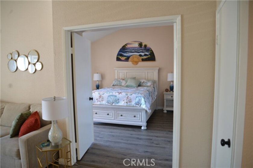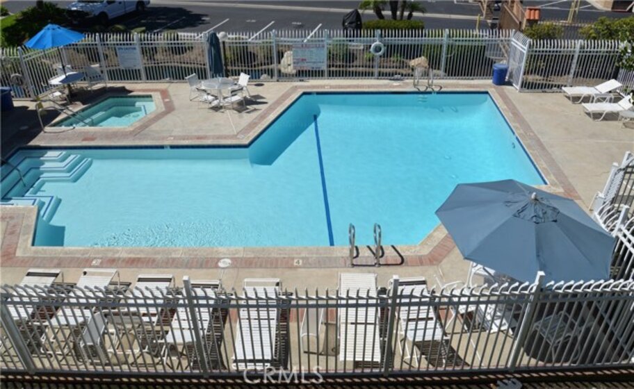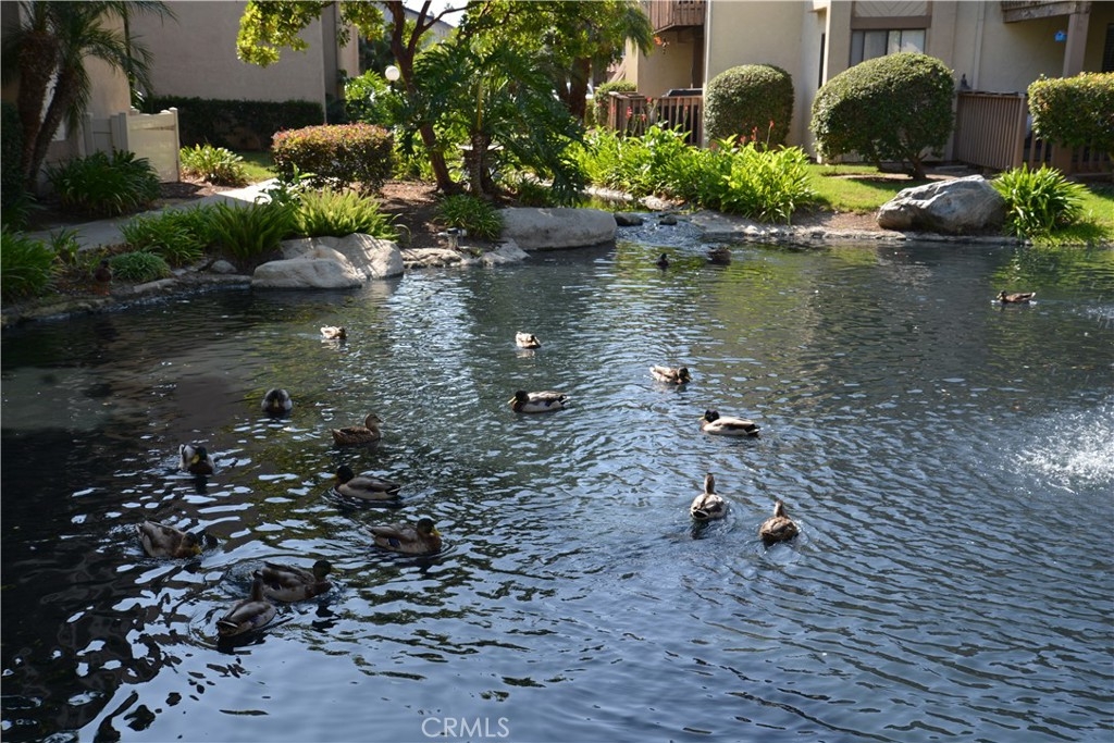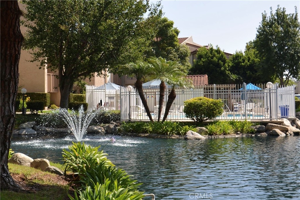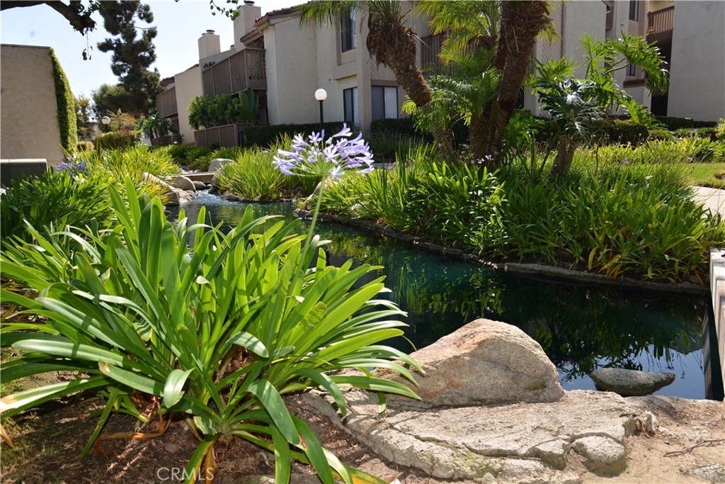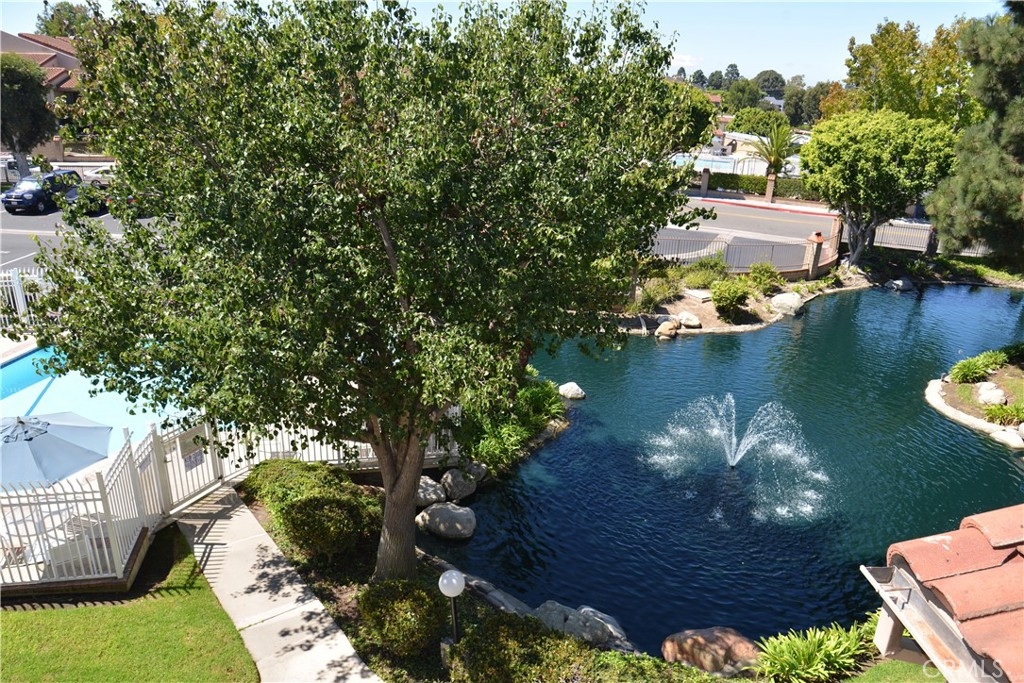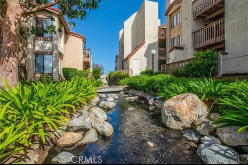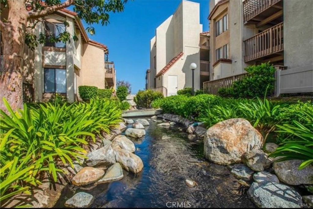 Resort-style living in one of Harbour Vista’s premier view locations! Move in condition upper-level 2 bed, 2 bath condo with elevator access. Enjoy amazing views of the sunsets, a beautiful fountain and pool from your private balcony! The grounds are landscaped with peaceful ponds, tranquil streams and bridges throughout. Walk into an open floor plan with soaring vaulted ceilings, a spacious living room, laminate wood floors, a cozy fireplace and an abundance of natural light. Two primary bedrooms with en suite baths—one with vaulted ceilings, double door entry, new quartz dual sink counter top, walk-in closet and an additional patio door with access to the private balcony. The other bedroom features an en suite bath, mirrored closet doors and new quartz counter top. Newly updated kitchen boasts new quartz counter tops and backsplash and includes a gas range/oven, microwave, dishwasher, and ample cabinet storage. For your convenience there is inside laundry, a detached 1-car garage, storage and an assigned parking space. This community offers incredible amenities include 2 pools/spas, clubhouse, sports court, dog park, BBQ area and lush landscaped grounds. HOA covers water, trash, exterior maintenance and amenities. Minutes to the beach, Bella Terra Mall, Bolsa Chica Wetlands, Huntington Bay, dining, Trader Joe’s and freeways. Gated community. Experience Coastal-Living at its Best!