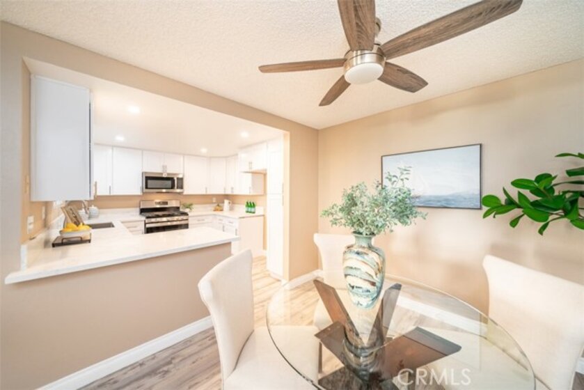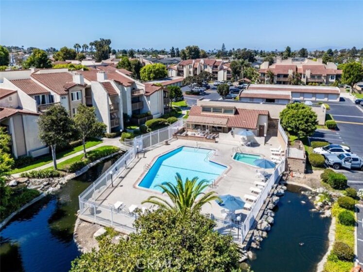 Welcome to your new home in the gated Harbor Vista community in Huntington Beach! This stunning 3-bedroom, 2-bathroom condo offers a blend of modern upgrades and Southern California charm. Conveniently located on the first floor with no stairs, this move-in-ready unit features a brand-new kitchen equipped with soft-close cabinets, brand new appliances, and stylish vinyl flooring. The condo's upgraded bathrooms provide a touch of luxury, while two expansive patios offer serene views of lush greenery and tranquil streams. The primary bedroom is a true retreat, boasting a spacious en suite bathroom with dual sinks, a generous walk-in closet, and its own private patio. Additional highlights include a separate laundry room for added convenience, a private 1-car garage, and an assigned parking spot located very close to the unit. The Harbor Vista community enhances your living experience with amenities such as a pool, spa, clubhouse, and basketball courts. Ideally situated in Huntington Beach, you'll enjoy effortless access to the beach, shopping, dining, and entertainment. Embrace the Southern California lifestyle and make this beautiful condo your new home in Harbor Vista. Water and trash are included in HOA dues. This property is on leased land which expires 8/31/2041 - land lease amount is $230 per month.