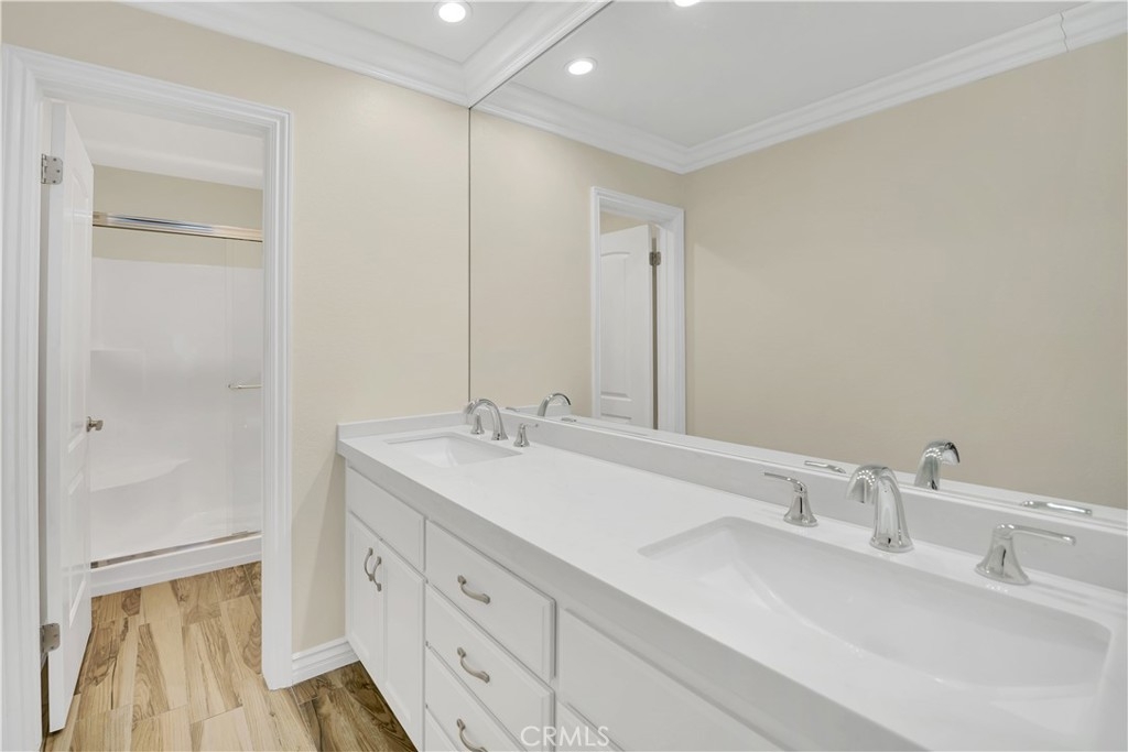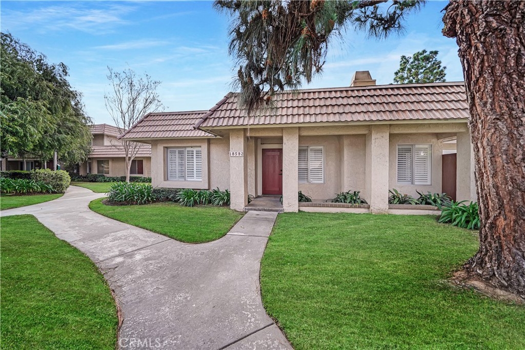 Rarely on the market end unit townhome on large serene greenbelt in a quiet interior location in the centrally located community of Huntington Creek! This single story features over 1,000 square feet of living space, 2 bedrooms, 2 full baths, a great room, and large attached two-car garage! Gorgeous upgrades throughout including wood plank tile flooring, custom paint, crown molding, neutral carpet, LED lighting, ceiling fans, custom window coverings and so much more! Fabulous extremely light & bright open floorplan, large great room with a cozy fireplace with custom stone surround and direct access to the oversized sunny patio! Open kitchen with granite counters, breakfast bar and newer stainless steel appliances. Adjacent to the kitchen is a large dining room. Master suite with mirrored wardrobe doors and in-suite master bath featuring beautiful quartz counters, double sinks and walk-in shower. Large secondary bedroom and separate bath that has been completely remodeled with quartz and light and bright finishes. Huntington Creek offers community swimming pool, club house, dog run and more! This community is now part of the highly sought after SeaCliff Elementary School district! All of this and you are just a few minutes from the beach, downtown HB, fabulous shopping and restaurants, the freeways, award-winning schools, and so much more! Please note the HOA is currently replacing the wall and fencing around the patio and should be completed shortly.