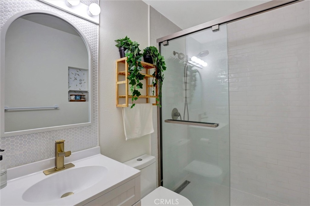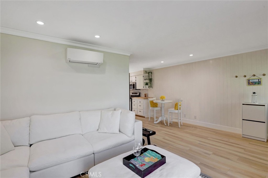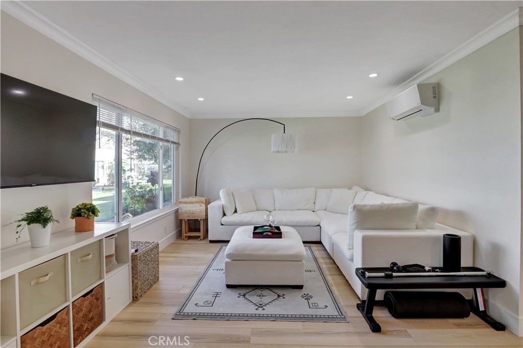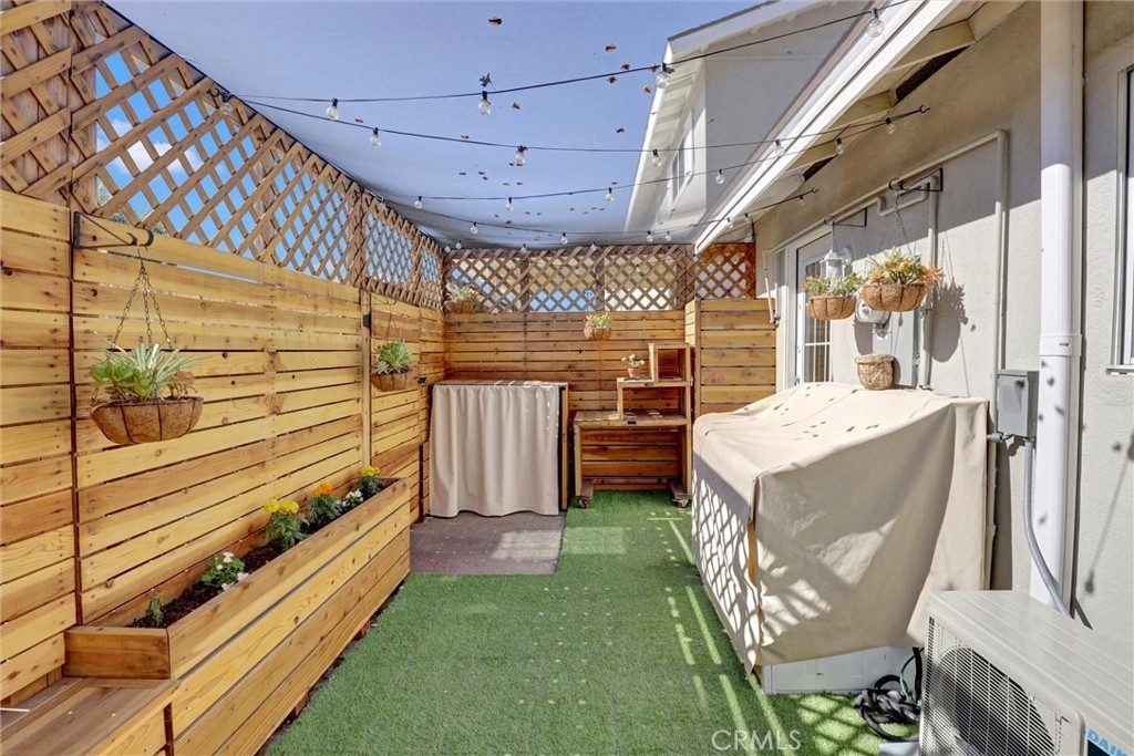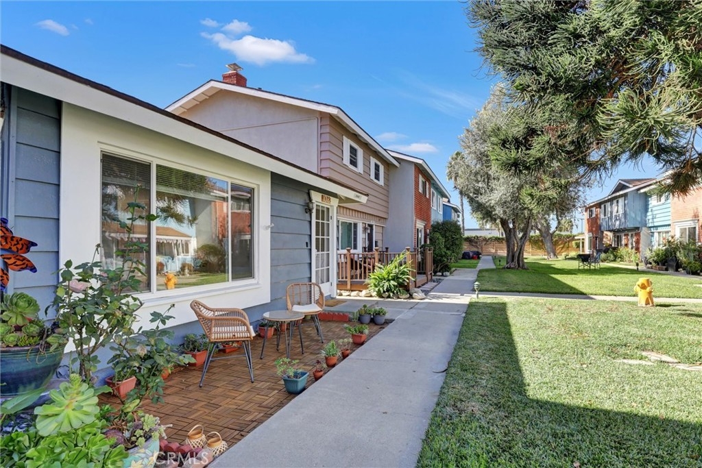 Beautiful single level end unit in Huntington Bay. Open floor plan with large windows for great natural light! Very short walk to Whole Foods, CVS Pharmacy, Target, Sprouts, restaurants, etc. and a few minutes drive to the beach. This unit has been throughly remodeled including New Electrical Panel and Outlets, Brand New Mini Split A/C and heating, New Luxury Vinyl Plank Flooring throughout the home. Remodeled Kitchen with newer dishwasher and refrigerator. Remodeled bathroom including new vanity, dual flush toilet. Brand new open closet system in bedroom, New Barn doors in bedroom and bathroom. Exterior in front of home has brand new pavers for additional outdoor living space and alfresco dining (super friendly neighborhood) Back of home has a custom built enclosed patio with built in storage benches/seats and planter boxes. Enjoy laundry in the enclosed rear patio. Wonderful greenbelt right out your front door for dogs to walk and alfresco dining. No need to join a gym with the newly installed $4,500 Tonal ("Worlds Smartest Complete Compact Home Gym System) The community includes a great clubhouse, pool, BBQ and picnic area. One designated covered space as well as several open parking spots. Talk about "Turn Key" this unit comes Completely Furnished with oversized modular cloud couch, mounted TV in living room, Queen Bed, bedroom TV, Beautiful light fixture, matching storage units in bedroom and living room and over $1,000 in luxury "Ruggable Washable rugs (great for pets and kids) plus more, see complete list when you come to see it!