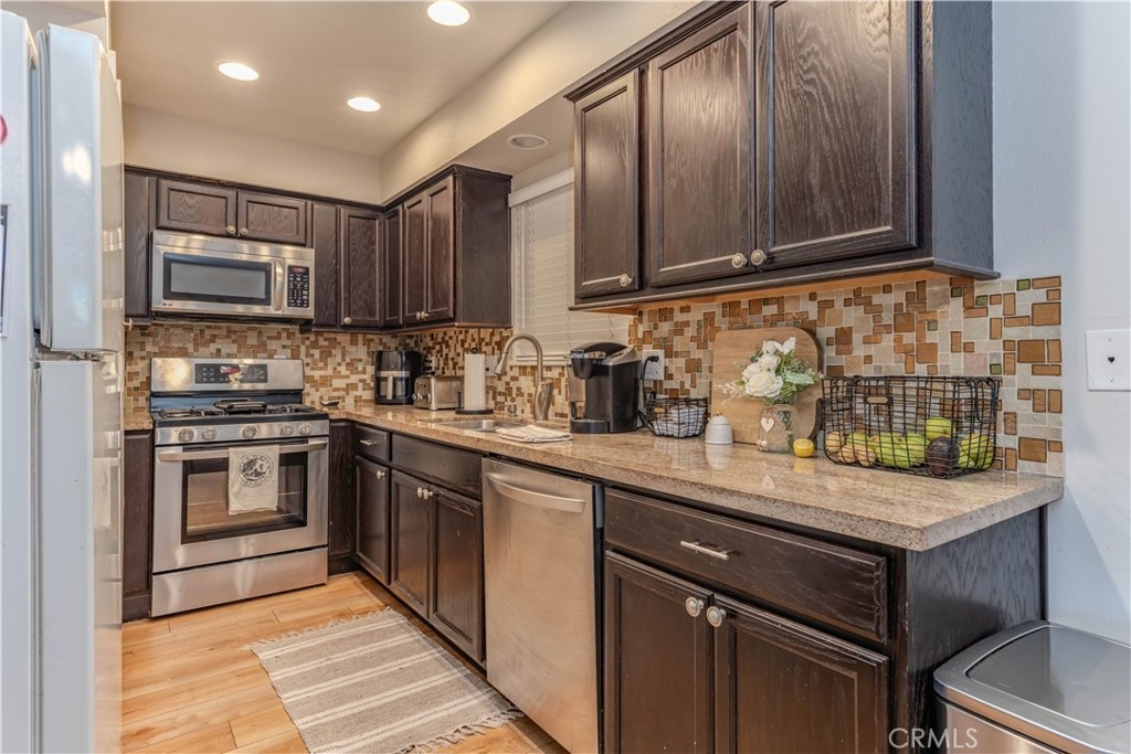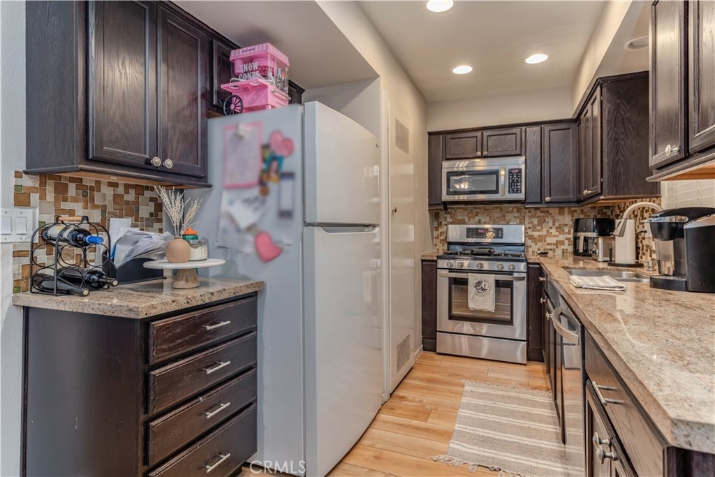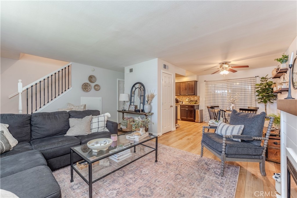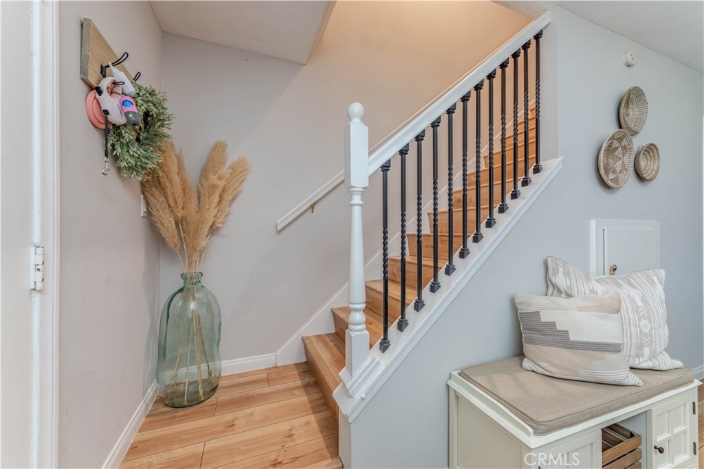 This Surf City USA townhome in the Huntington Bay Community offers 2 bedrooms, 1.5 bathrooms, and 1,100 sq. ft. of living space. The property has been charmingly remodeled and features an open floor plan with a family room leading to the dining area and an updated kitchen. The kitchen includes updated cabinetry, stainless steel appliances, granite countertops, and a glass mosaic backsplash. Both bathrooms have been upgraded as well. Upstairs, you'll find two large bedrooms with plenty of closet space. Other features include recessed lighting, vinyl dual-pane windows, premium vinyl plank flooring and ceiling fans throughout. Additionally, the property boasts a large, private enclosed patio for additional space and privacy, one covered parking space, and plenty of visitors parking in front of the unit. The Huntington Bay Community provides residents with lush green belts, a community pool, a clubhouse, a BBQ area, and additional guest parking spaces. The location is perfect for outdoor enthusiasts with endless activities such as surfing the iconic waves of Huntington Beach, kayaking, fishing, and easy access to the river trail for a short bike ride to the beach.