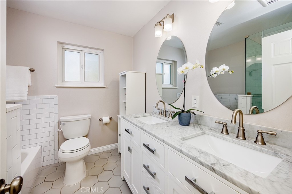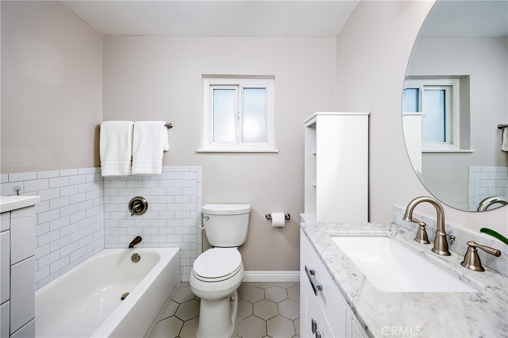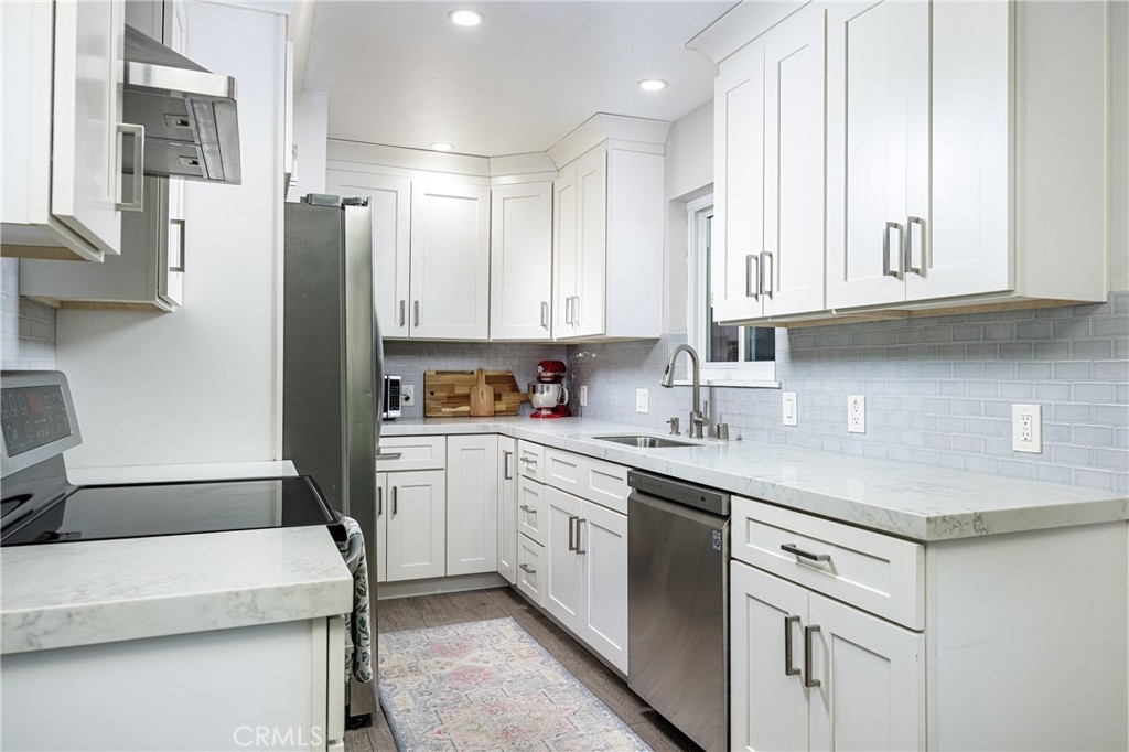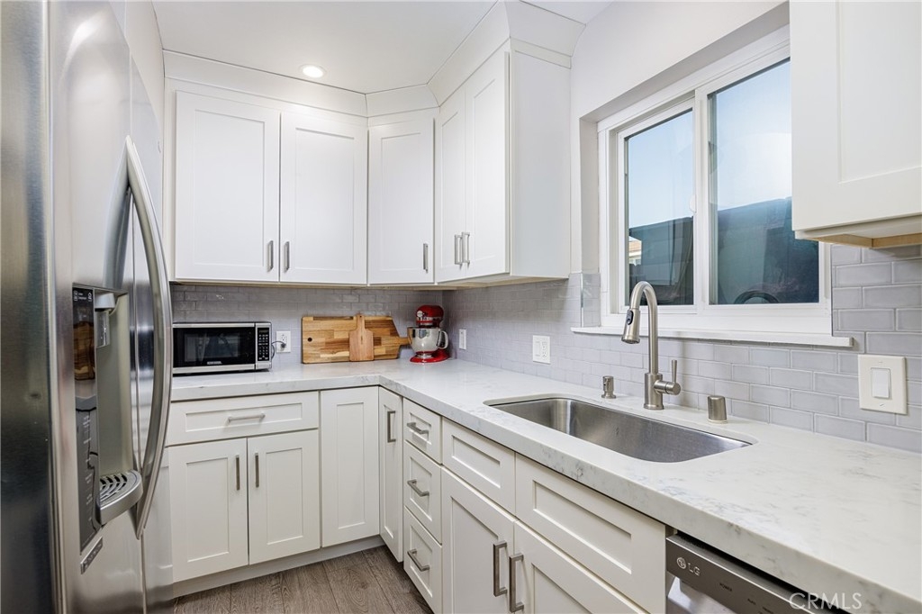 THIS Totally Remodeled Home including Kitchen, Bathrooms and also has Air Conditioning!!! Welcome to your dream home in sunny Huntington Beach! This immaculate residence is brimming with upgrades. Imagine stepping into a bright, open living room featuring a stunning stone fireplace and beautiful laminate flooring bathed in natural light. The upgraded kitchen is a chef's delight with white tile backsplash, modern cabinets, stainless steel appliances, and a window above the sink that brings the sunshine in. The inviting dining space has a beautiful built-in storage with shelves and slide open the glass door to your private patio – perfect for enjoying ocean breezes and California sunshine with a handy storage shed. Enjoy outdoor activities on the patio right off the kitchen. The second floor boasts 3 bedrooms and an upgraded full bathroom. The bathroom has a tile surround shower with glass enclosure as well as a modern tub and upgraded vanity with dual sinks providing ample room for storage and updated light fixture. Plus, you'll find fantastic amenities like a tankless water heater, attic storage w/pull down stairs, LED lighting and air conditioning. Easy alley access and 1 assigned covered parking space make this one a desirable location. Indulge in the community's perks: sparkling pools, relaxing hot tubs, and lush parks. Nestled in Surf City, you're just moments away from shopping, dining, the iconic HB Pier, and beach adventures. This is coastal living at its finest!