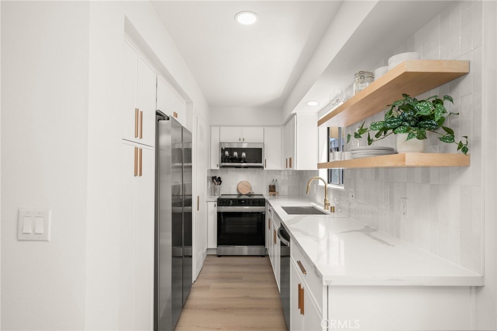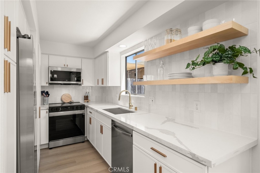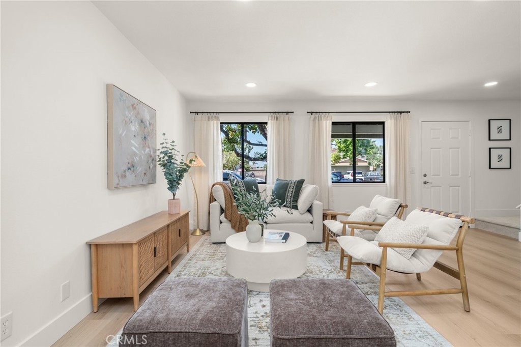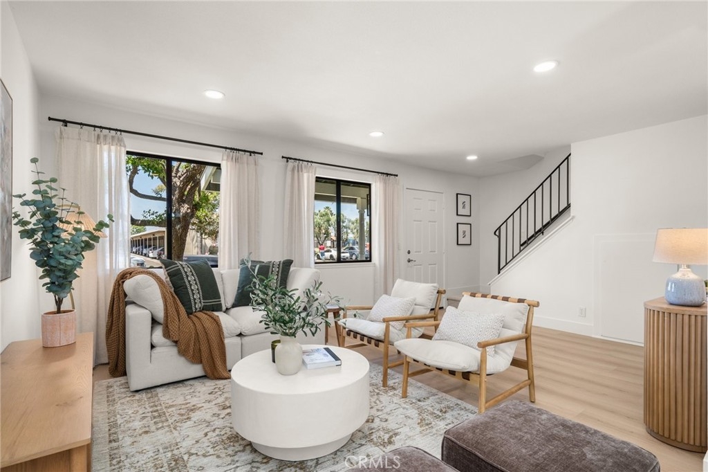 Enjoy California coastal living without the million dollar price tag! This beautiful townhome features a perfect blend of elegance and practical floorplan for everyday living. This beautiful, remodeled townhome offers a practical, everyday-living floorplan with new flooring and interior paint, and fully renovated kitchen and bathrooms. The spacious family room greets you upon entry and flows seamlessly into the dining room and kitchen. Large contemporary style windows allow for ample natural lighting to pour in. The kitchen has been tastefully redone with a beautiful quartz countertop, floating shelves, soft-close kitchen cabinets featuring brass hardware. Stainless-steel appliances are also included in the sale! The second floor features 3 bedrooms, each designed with modern wallpaper accents and a spacious bathroom. This townhome comes with 1 carport space #228 located behind the property. Street parking is also available. HOA amenities include a swimming pool, spa, playground, sports court, and a green-belt dog park. Close to exceptional schools and a short bike ride to the beach, many dining options, entertainment and shopping at Main Street, Pacific City and Downtown Huntington Beach. It is also within distance to many local stores such as Whole Foods, Target, Kohls, and Starbucks, to name a few! This house is going to sell fast!