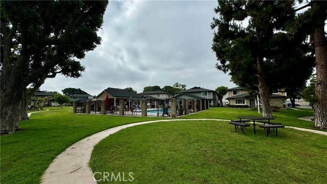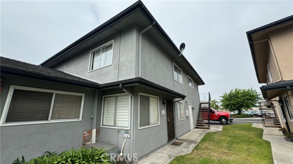 This updated 2-bedroom home offers an ideal blend of comfort and convenience, perfectly situated just 15 minutes from Huntington Beach Pier and 5 minutes from the 405 for easy commuting. The home boasts abundant natural light, highlighted by custom arched plantation shutters that complement the arched front door. The kitchen features sleek chocolate brown soft-close cabinets, granite counters, and elegant dim lighting in both the kitchen and dining areas. Upstairs, you'll find two generously sized bedrooms with recessed lighting and ample closet space. The bathroom is artistically updated with accent marble walls and flooring. Convenient garage parking shared with just one neighbor. Whether you're seeking a charming beach getaway or an affordable first-time home, this property delivers with its inviting pool, picnic area, and a convenient location close to shopping and dining. Don’t miss the chance to make this fantastic home in a great beach community yours.