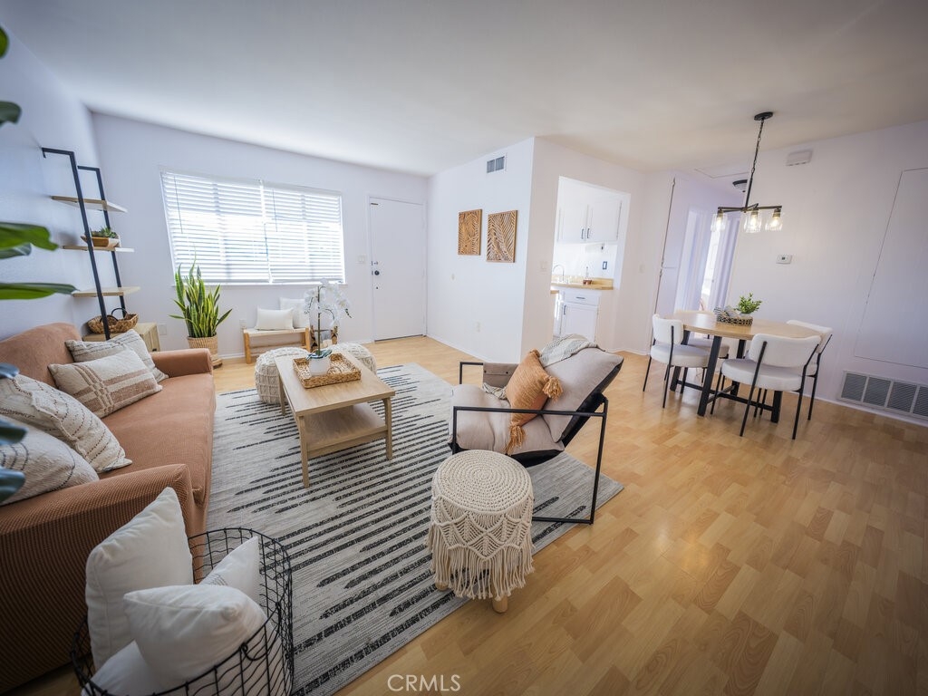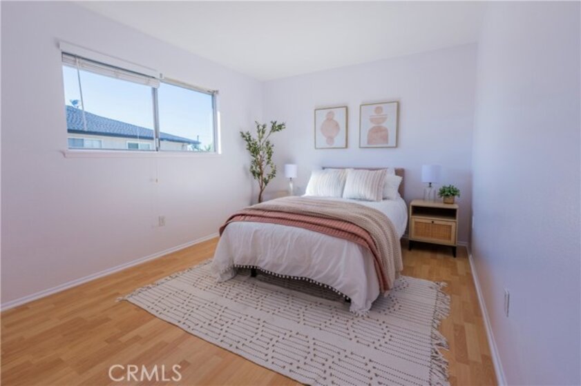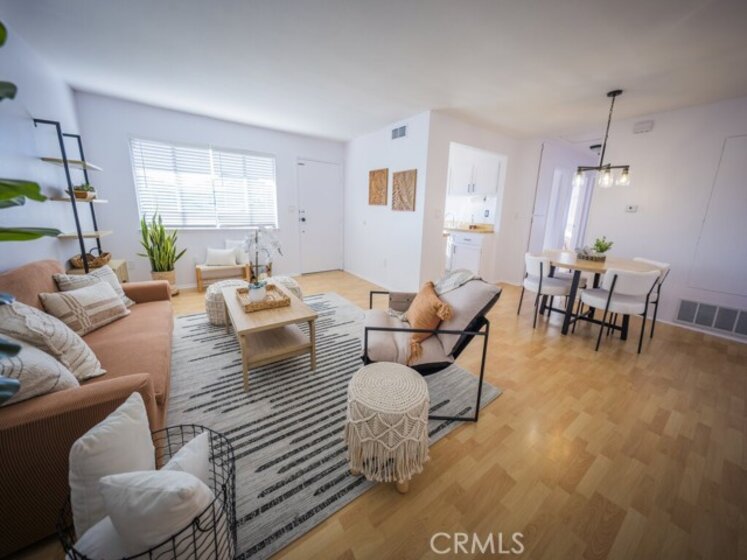 Welcome to Surf City-Huntington Beach, CA! This adorable upper-level 2-bedroom, 1-bath condo in the Huntington Gardens community is an excellent opportunity to own a home close to the beach. The unit features fresh paint, new light fixtures, laminate wood-like flooring, central heating, and a brand-new range and microwave. You will enjoy beautiful sunsets and ocean breezes on your front balcony. With the garage directly below, you'll have a dedicated parking space in a shared garage, along with convenient on-site community laundry. The home offers plenty of natural light, abundant storage, and views of the beautifully maintained community grounds, with additional open parking available for guests. Located in Huntington Beach with easy freeway access, the property is just a short drive to Huntington and Bolsa Chica State Beach, the popular Bella Terra shopping center, and other convenient shopping and dining options, as well as the wetlands. Reasonable HOA fees and FHA and VA approval make this home a wonderful opportunity. Don't wait! Reach out for your private tour today!