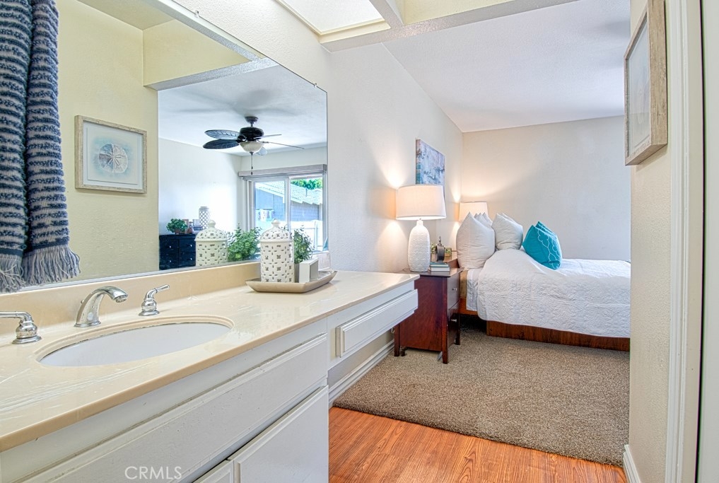 Welcome to Huntington Landmark. Huntington Landmark is an exclusive, active senior community, located minutes from the beach. This single level, end unit home has been recently upgraded with new carpet, paint and appliances. The courtyard entry will allow you to enjoy indoor-outdoor living, while flooding the home with an abundance of natural light. The remodeled kitchen includes custom cabinets, granite counter tops, and newer stainless appliances. The hall bath has a walk-in bathtub. Spacious bedrooms provide plenty of room to move around furniture. The master bedroom is complete with it's own private patio and a walk-in closet. This home feels like a single family home, only attached by one wall and even has a garage! Enjoy the active resort lifestyle in a community that includes use of clubhouse, sports courts, card room, woodshop, putting green, two heated pools and spa, shuffle board, gym, weight room, ceramic room, billiard room, library and more!