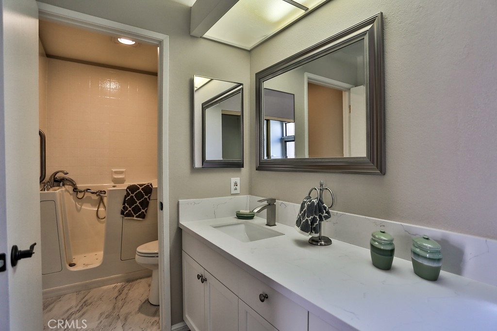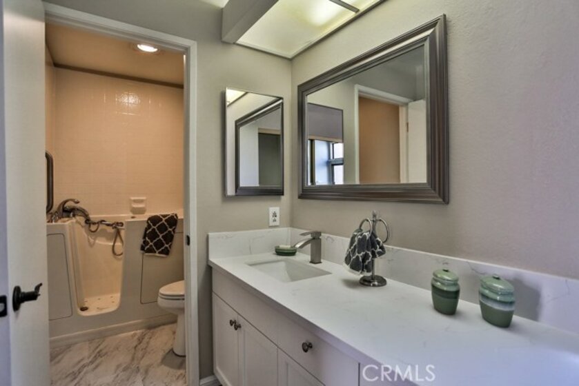Totally remodeled and gorgeous, this popular one level Atrium Model with no one above or below you is move in ready. Great location, short walk to parking and garage. The gorgeous kitchen has custom cabinets with easy access pull-out drawers, roll out shelves in pantry, beautiful granite counters and cork flooring so you can cook all day and keep your feet comfortable. The living room is spacious with new plantation shutters for added privacy and the hardwood floors have been refinished and are absolutely gorgeous. Both bathrooms have been upgraded with custom cabinetry and the master has a walk in spa tub. You will love the private Atrium which brings the outdoors in for added living space. There is also a new water heater. Huntington Landmark is an upscale senior community located close to the beach with amazing amenities and activities. Enjoy the large heated swimming pool, tennis and putting green. The Club house has never ending activities to keep you busy such as dances, crafts, book clubs and games or just sit by pool and relax or enjoy your own private patio.