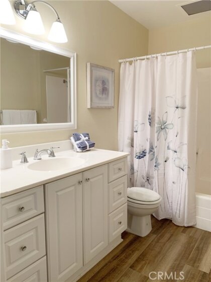 Location, Location, Location! Wonderful Ground Level, Single Story Unit with No one above you--In the Heart of Gated Huntington Landmark. It does NOT have street noise. Is Located within a few miles to the Beach--Enjoy the Cool Ocean Breezes. Where else can you live so close to the beach at this price? Premium Interior location--close to the pool and spa area with beautiful greenbelt areas. Parking is very close to the unit. A not so evident benefit--the parking is not directly in front, so there are no headlights and noise from the cars. Nicely remodeled with brand new carpet and flooring and new interior paint. The kitchen has been remodeled w/cesearstone counter tops & white cabinetry. The bathroom has also been remodeled & has a great looking white vanity and counter top. It has a private patio, with a tall slumpstone wall, for privacy. The washer and dryer is in the closet, on the patio. The community offers Resort-Style living with MANY AMENITIES such as 2-heated pools and spas, tennis courts, shuffle board, a putting green, weight room, clubhouse, ceramics room, wood shop, library, billiards, and many other clubs and scheduled activities such as Bingo, line dancing classes, water workout classes, card playing groups. Landmark Pet's Policy allows for 2 Dogs. Supplements are attached with Landmark Information/Guidelines. Many events for your enjoyment! Come see for yourself what Huntington Landmark has to offer! This is a charming, single level home meant for you!
