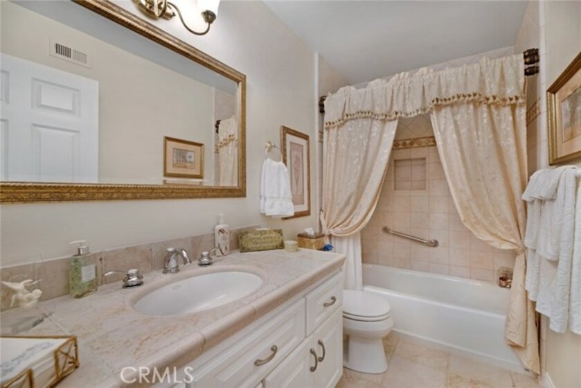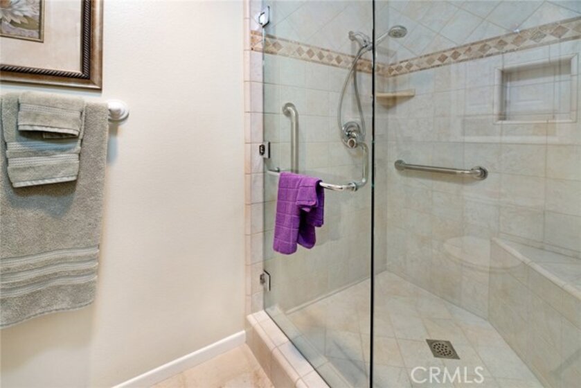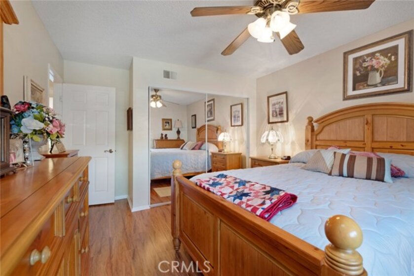 This senior villa has it all! Many upgrades including lam wood floors & etched ceramic floors, 4" baseboards, dual paned windows & cellular shades throughout. Inside stacked lndry unit off kitchen, lovely sunroom w/ privacy blinds & a large private front courtyard, This 2bdrm/2ba end unit home is the largest of the 2 bdrm models in Huntington Landmark and this one has bonus space of approx. 150 s.f. in the versatile garden room. The location is also one of the best in the community; surrounded by mature trees & grassy knolls in front & the most convenient parking to the back. The private enclosed garage is just steps out the back door & guest pkg is even closer. No long treks bringing in groceries here. The lg. kitchen offers recessed lighting, dishwasher, range & microwave. The adjacent open concept dining room has its own special attributes with a built-in wall buffet & ceiling fan.The master suite also includes a pleasant ceiling fan & deep walk-in closet. Master bath has an enlarged walk-in shower with 5/8" solid safety glass enclosure. Another ceiling fan is found in the 2nd bedroom which offers plenty of room & a lg. mirrored wardrobe closet. Live the best HB Senior life in Huntington Landmark with amenities galore, including pools, spas, sport courts, walking trails, clubs & travel, clubhouse, events & did I mention that this is all within a mile of the Pacific Ocean? Termite Pre-cleared. Quick escrow okay!