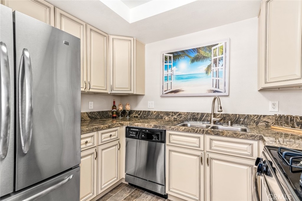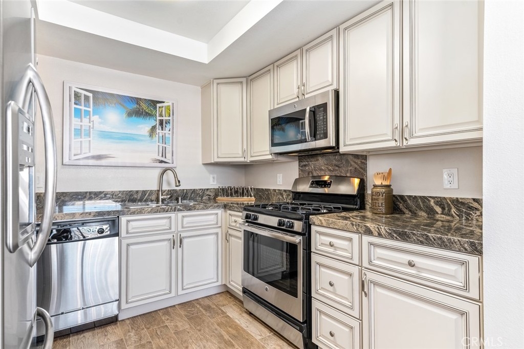 One might say that the owner of this property has the best 1-bedroom in Huntington Landmark! Remodeled, Re-piped, Single level & away from busy streets. This light & bright yet cozy villa sits on a greenbelt w/mature trees in a park-like setting. Adding to the superiority of its location is the convenience of your mailbox & enclosed 1-car garage w/storage just outside your back gate. This unit has been totally remodeled & has just been refreshed with new carpet and paint. Custom kitchen w/ the most beautiful granite, SS appliances, custom cabinetry, wood plank tile and LED lighting. Fresh new bathroom w/granite vanity, walk-in shower, new tile surround, & brushed nickel accessories. Your huge bedroom is filled with sunlight that pours in from the large window overlooking the greenbelt, with the large trees offering just the right amount of shade. You also will find 2 xl mirrored wardrobe closets in your bedroom & added storage in the spacious hallway closet. Your private enclosed back patio is perfect for outdoor dining, entertaining or just relaxing w/a book & a beverage. Huntington Landmark offers just about every amenity you can think of: Pools, spas, tennis, sport courts, recreation room, numerous clubs, planned concerts & events AND RV parking is available! This hidden gem is located within approx a mile of the crashing waves & warm sand w/opportunities to bike, walk or drive to enjoy beautiful Huntington Beach. Come, make this home your own before somebody else does!