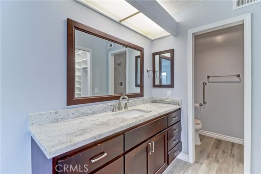 SUCH A BEAUTY! A MUST SEE PROPERTY. Very Popular 2 Br Marina Model Floorplan with Large Courtyard Patio in Front & a 2nd Patio Off the Primary Br. Modern and Clean. Very Open Floorplan with a Combined Living & Dining Area with Vaulted Ceilings. Completely Updated. Luxury Vinyl Plank flooring & Baseboards throughout the entire property. Repainted. Gorgeous White Built-in Cabinetry in the Dining area Providing so much Storage. Remodeled Kitchen with Recessed Lighting, Stainless Steel Gas stove & Built-in Microwave, Tasteful Countertops and Backsplash. Includes Refrigerator. There is a Kitchen window that overlooks the Front Courtyard Patio. Both Baths have been Remodeled with Gorgeous Cabinetry & Showers including a shower niche & added Cabinetry. Primary Br has a Spacious Walk-in Closet which has been Revamped with Professional Organizers to maximize the Storage space. Guest Br has the largest Guest Br of any floorplan. Guest Br has professionally done Built-in Added Organization as well. Very inviting Tile Patio off the Back Primary Br. The Original Builder Fence has been Updated with a Vinyl Fence which is Taller than the Standard Builder Height Fence for Maximum Privacy. Private Laundry Closet with Included Washer and Dryer. As you Walk up to the Property, you are Greeted w/Gorgeous Greenery & Palm Trees Surrounding the Bldg & the Property. It is truly is among one of the most Pleasant & Best Landscaped Areas Remaining in the Complex. With 2 Inviting Patios You'll Find Yourself wanting to Relax in Both! The Garage has an Upgraded Roll Up Garage Door. Feels Like Being at a Resort with a Fabulous Recreation Center. 2 Pools, 2 Spas with Main Rec Center Pool being almost Olympic Size! Tennis Courts, Pickleball Courts, Ping Pong, Dances, Trips, Movies, Clubs, Parties, Concerts, Fitness Center, Fitness classes-Water Aerobics, Yoga & Zumba, Woodshop, Chorale, Quilters, Art & Ceramics Clubs & Classes, Billiards, Putting Green, Library & Much More. Well Maintained Grounds with Mature Trees. Hunt Landmark is located close to the Post Office and Grocery Store and Famous Beaches of Huntington Beach. Near the HB Pier, Downtown Area & Pacific City. You are Close to Shopping and the Post Office. 24 Hr Guard Gated 55+ Community Near the Ocean (Approx.1.2 Miles).