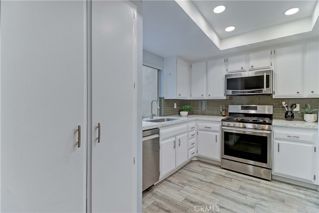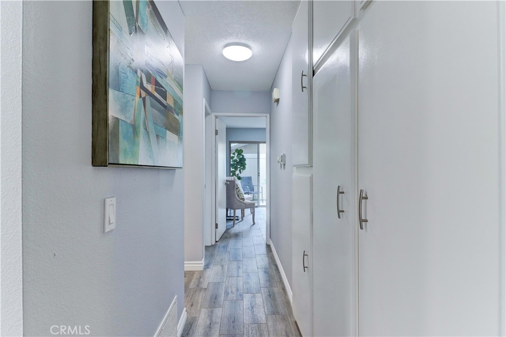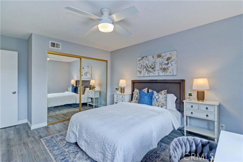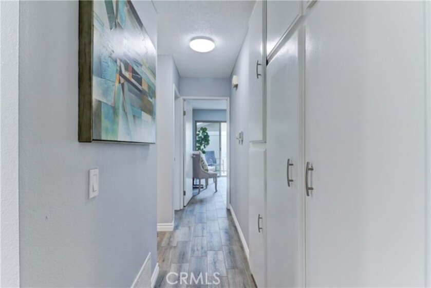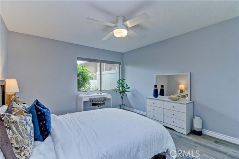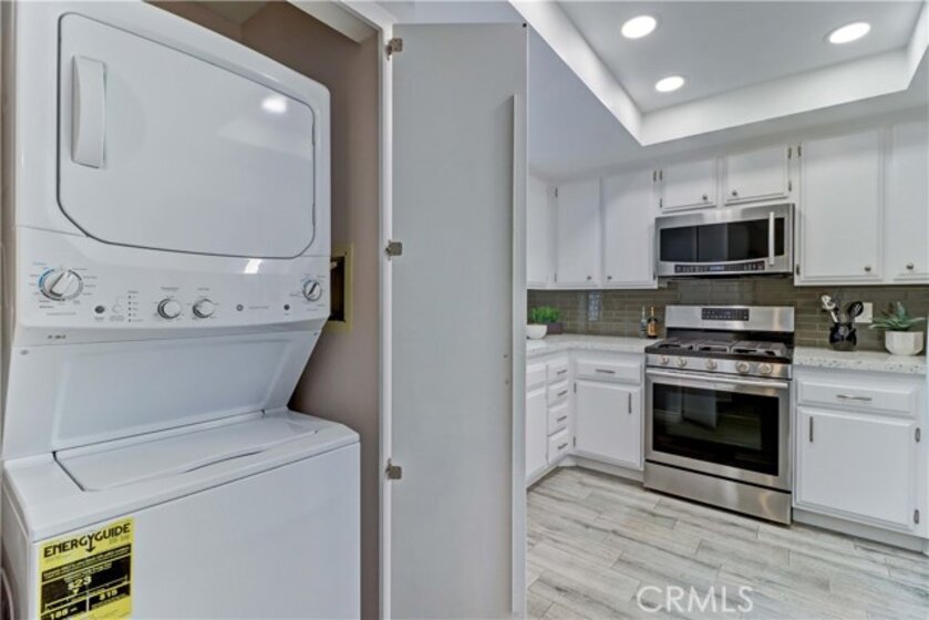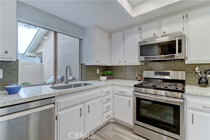 GORGEOUS REMODEL-SUCH A BEAUTY! A MUST SEE PROPERTY. Very Popular 2 Br Marina Model Floorplan with Large Courtyard Patio in Front & a 2nd Patio Off the Primary Br. Modern and Clean. Very Open Floorplan with a Combined Living & Dining Area with Vaulted Ceilings. Completely Updated. Luxury Vinyl Plank flooring & Baseboards throughout the entire property. Gorgeous White Built-in Cabinetry in the Dining area Providing so much Storage. Remodeled Kitchen with Recessed Lighting, Stainless Steel Gas stove & Built-in Microwave, Tasteful Countertops and Backsplash. Includes Refrigerator. There is a Kitchen window that overlooks the Front Courtyard Patio. Both Baths have been Remodeled with Gorgeous Cabinetry & Showers including a shower niche & added Cabinetry. Primary Br has a Spacious Walk-in Closet which has been Revamped with Professional Organizers to maximize the Storage space. Guest Br has the largest Guest Br of any floorplan. Guest Br has professionally done Built-in Added Organization as well. Very inviting Tiled Patio off the Back Primary Br. The Original Builder Fence has been Updated with a Vinyl Fence which is Taller than the Standard Builder Height Fence for Maximum Privacy. Private Laundry Closet with Included Washer and Dryer. As you Walk up to the Property, you are Greeted w/Gorgeous Greenery & Palm Trees Surrounding the Bldg & the Property. With 2 Inviting Patios You'll Find Yourself wanting to Relax in Both! The Garage has an Upgraded Roll Up Garage Door. Feels Like Being at a Resort with a Fabulous Recreation Center. 2 Pools, 2 Spas with Main Rec Center Pool being almost Olympic Size! Tennis Courts, Pickleball Courts, Ping Pong, Dances, Trips, Movies, Clubs, Parties, Concerts, Fitness Center, Fitness classes-Water Aerobics, Yoga & Zumba, Woodshop, Chorale, Quilters, Art & Ceramics Clubs & Classes, Billiards, Putting Green, Library & Much More. Well Maintained Grounds with Mature Trees. Hunt Landmark is located close to the Post Office and Grocery Store and Famous Beaches of Huntington Beach. Near the HB Pier, Downtown Area & Pacific City. You are Close to Shopping and the Post Office. 24 Hr Guard Gated 55+ Community Near the Ocean (Approx.1.2 Miles).