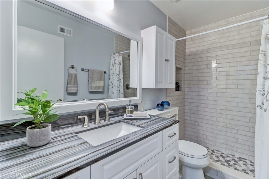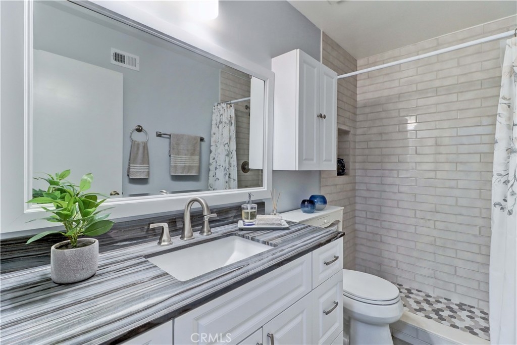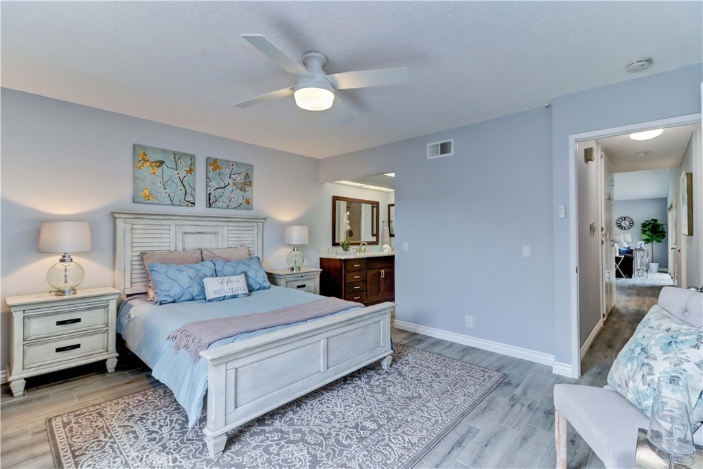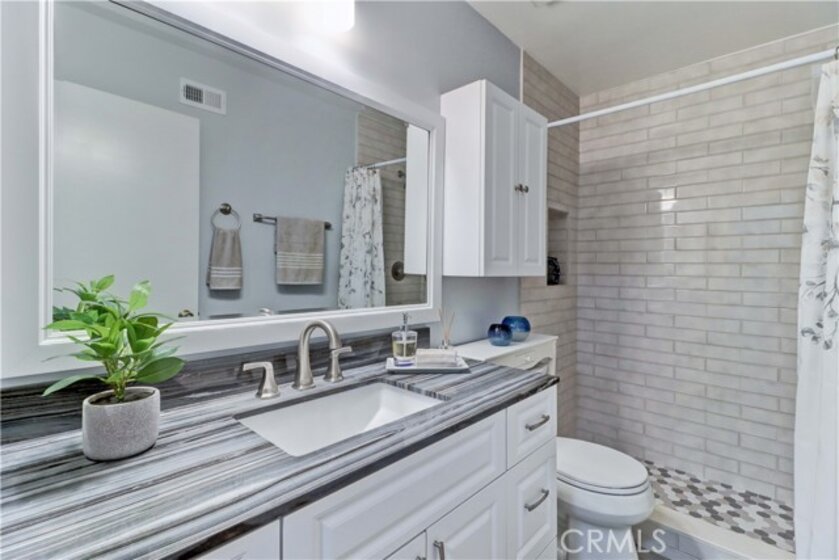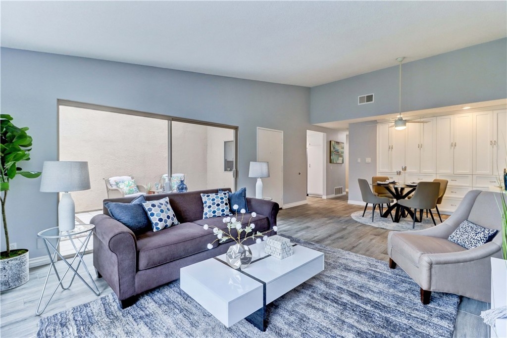 GORGEOUS REMODEL-SUCH A BEAUTY! A MUST SEE PROPERTY. Very Popular 2 Br Marina Model Floorplan with Large Courtyard Patio in Front & a 2nd Patio Off the Primary Br. Modern and Clean. Very Open Floorplan with a Combined Living & Dining Area with Vaulted Ceilings. Completely Updated. Luxury Vinyl Plank flooring & Baseboards throughout the entire property. Gorgeous White Built-in Cabinetry in the Dining area Providing so much Storage. Remodeled Kitchen with Recessed Lighting, Stainless Steel Gas stove & Built-in Microwave, Tasteful Countertops and Backsplash. Includes Refrigerator. There is a Kitchen window that overlooks the Front Courtyard Patio. Both Baths have been Remodeled with Gorgeous Cabinetry & Showers including a shower niche & added Cabinetry. Primary Br has a Spacious Walk-in Closet which has been Revamped with Professional Organizers to maximize the Storage space. Guest Br has the largest Guest Br of any floorplan. Guest Br has professionally done Built-in Added Organization as well. Very inviting Tiled Patio off the Back Primary Br. The Original Builder Fence has been Updated with a Vinyl Fence which is Taller than the Standard Builder Height Fence for Maximum Privacy. Private Laundry Closet with Included Washer and Dryer. As you Walk up to the Property, you are Greeted w/Gorgeous Greenery & Palm Trees Surrounding the Bldg & the Property. With 2 Inviting Patios You'll Find Yourself wanting to Relax in Both! The Garage has an Upgraded Roll Up Garage Door. Feels Like Being at a Resort with a Fabulous Recreation Center. 2 Pools, 2 Spas with Main Rec Center Pool being almost Olympic Size! Tennis Courts, Pickleball Courts, Ping Pong, Dances, Trips, Movies, Clubs, Parties, Concerts, Fitness Center, Fitness classes-Water Aerobics, Yoga & Zumba, Woodshop, Chorale, Quilters, Art & Ceramics Clubs & Classes, Billiards, Putting Green, Library & Much More. Well Maintained Grounds with Mature Trees. Hunt Landmark is located close to the Post Office and Grocery Store and Famous Beaches of Huntington Beach. Near the HB Pier, Downtown Area & Pacific City. You are Close to Shopping and the Post Office. 24 Hr Guard Gated 55+ Community Near the Ocean (Approx.1.2 Miles).