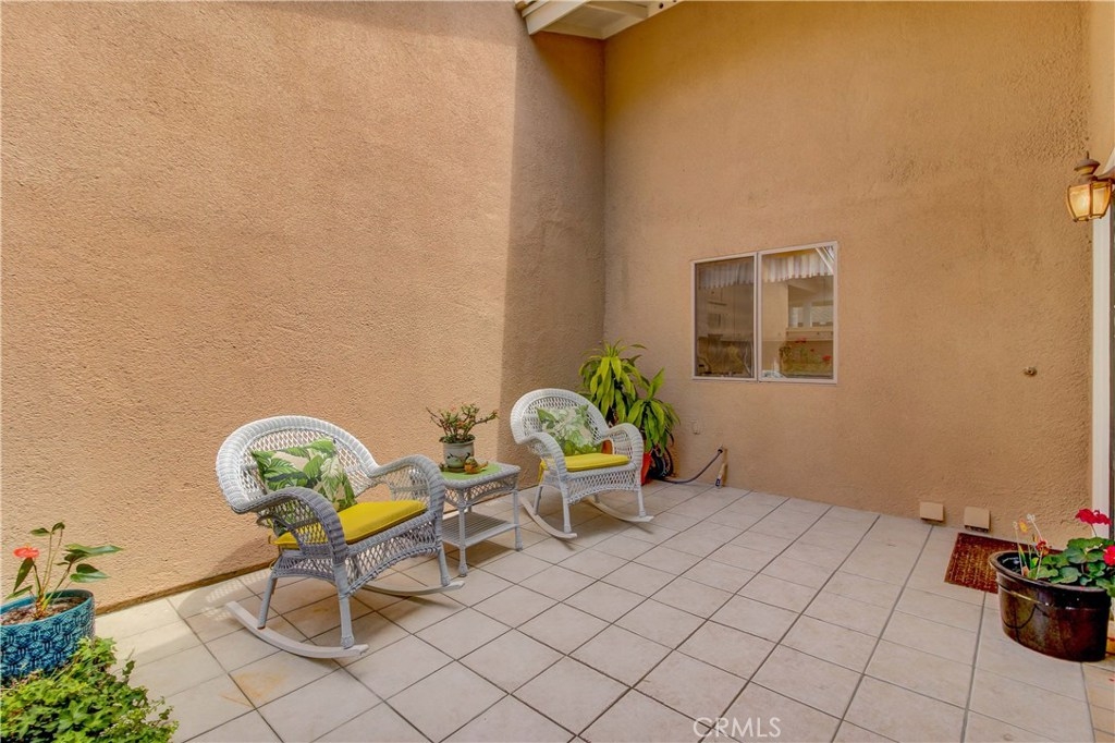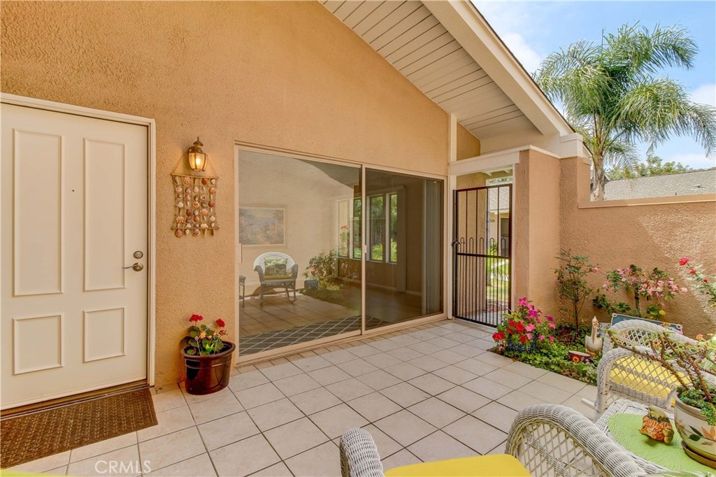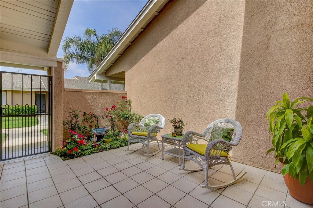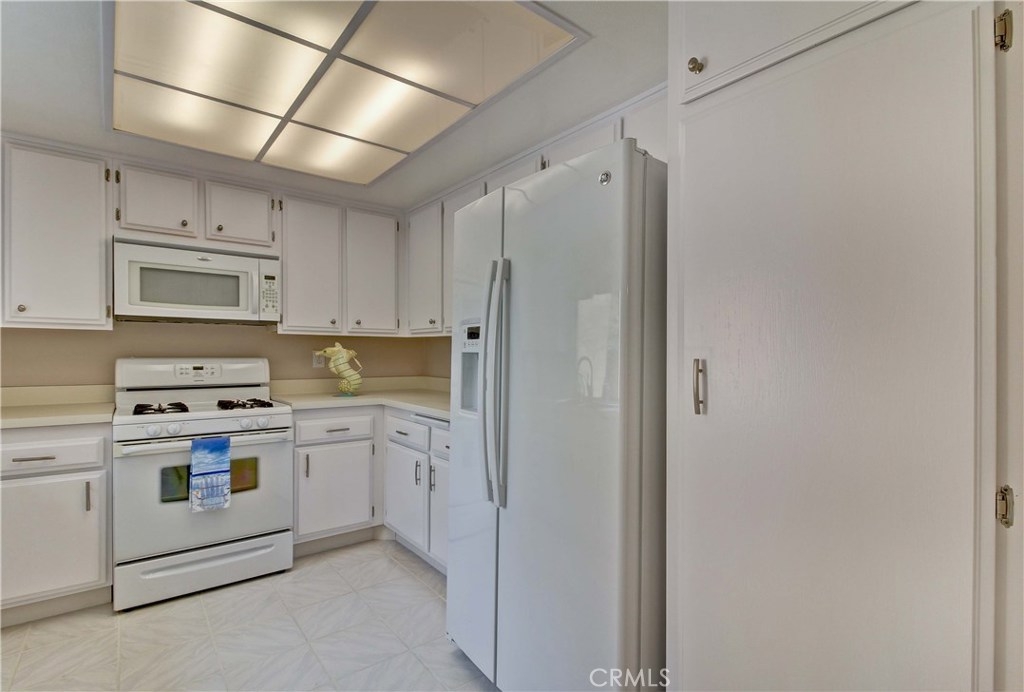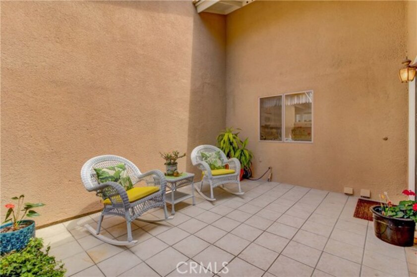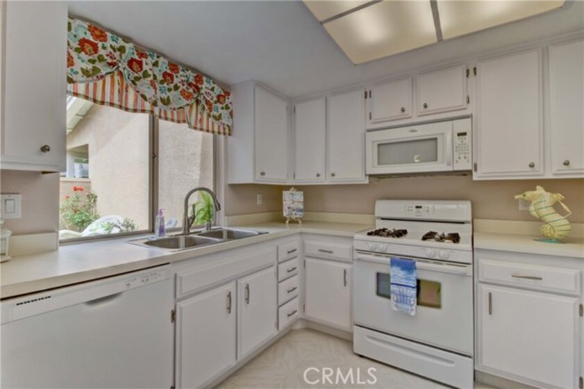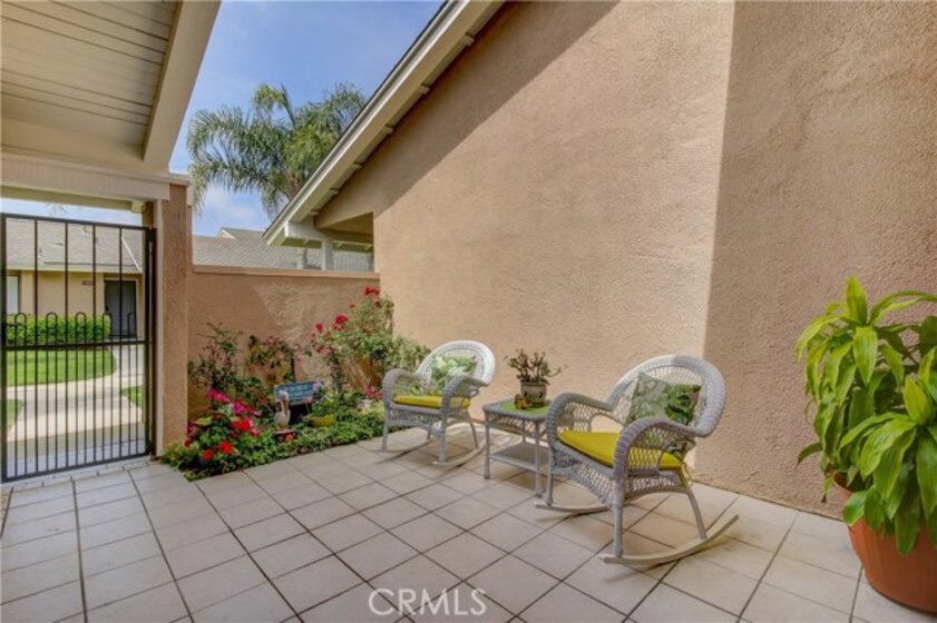 VERY POPULAR 2 BR SINGLE STORY MARINA FLOORPLAN W/ LARGE COURTYARD PATIO IN FRONT & 2ND PATIO OFF OF THE MASTER BR. ALL NEW PAINT T/O. VERY OPEN FLOORPLAN W/ A COMBINED LIVING & DINING AREA. WHITE TILED FLOORING T/O EVERYWHERE EXCEPT IN IN LIV RM & GUEST BR WHICH HAS LAMINATED WOOD FLOORING. BEAUTIFUL ALL WHITE KITCHEN W/ WHITE APPLIANCES & METICULOUSLY PAINTED WT CABINETRY. ENJOY THE GARDEN VIEW OUT YOUR KITCHEN WINDOW ONTO THE COURTYARD PATIO. GUEST BR HAS THE LARGEST GUEST BR OF ANY FLOORPLAN. MASTER BR HAS A SPACIOUS WALK-IN CLOSET. VERY INVITING TILED BACK PATIO OFF THE MASTER BR. THE ORIGINAL BUILDER FENCE HAS BEEN UPDATED W/ A VINYL FENCE WHICH IS TALLER THAN THE STANDARD BUILDER HEIGHT FENCE FOR MAXIMUM PRIVACY. PAYNE FURNACE, DISHWASHER, GE REFRIGERATOR, GUEST BTH KOHLER COMFORT HEIGHT TOILET & WASHER & DRYER ALL REPLACED THIS YEAR! WATER HEATER & GARBAGE DISPOSAL REPLACED. AS YOU WALK UP TO THE PROPERTY, YOU ARE GREETED W/ GORGEOUS GREENERY & TREES SURROUNDING THE BUILDING & THE PROPERTY. IT IS TRULY ONE OF THE MOST PLEASANT & BEST LANDSCAPED AREAS IN THE COMPLEX. W/ 2 INVITING PATIOS YOU'LL FIND YOURSELF WANTING TO RELAX IN BOTH! THE GARAGE HAS AN UPGRADED ROLL UP GARAGE DOOR. 24 HOUR GUARD GATED 55+ COMMUNITY 1.2 MILES TO THE OCEAN. THE FEELING OF BEING AT A RESORT W/ A FABULOUS RECREATION CENTER W/ 2 POOLS-ONE NEARLY OLYMPIC SIZE & 2 SPAS, TRIPS, CLUBS, DANCES, BINGO, TENNIS, PICKLE BALL, FITNESS CTR, ART, CERAMICS & FITNESS CLASSES & MUCH MORE!