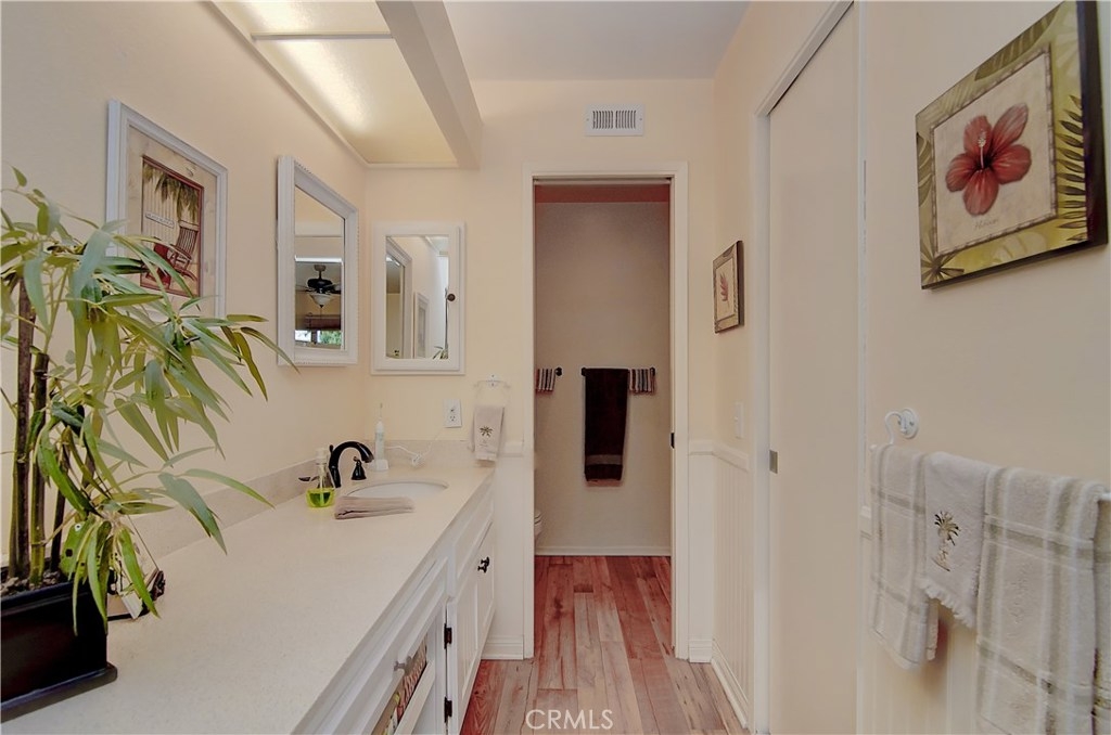 LOCATION! LOCATION! LOCATION! ! MUST SEE THIS BEAUTIFUL MARINA MODEL 2 BED -2 BATHS - 1 CAR GARAGE CONDO LOCATED IN THE DESIRABLE 55+ COMMUNITY OF HUNTINGTON LANDMARK. COME HOME TO ELEGANCE, SERENITY AND QUALITY OF DESIGN. THIS BEAUTIFUL CONDO FEATURES RENOVATED KITCHEN WITH SOLID SURFACE COUNTER-TOPS, ELEGANT LAMINATE FLOORS THROUGHOUT, VAULTED CEILINGS, SCRAPPED CEILINGS, RENOVATED BATHROOMS, DOUBLE PANE WINDOWS, CEILING FANS, MUCH MORE. THIS LOVELY CONDO HAS IT ALL, INCLUDING ITS FABULOUS LOCATION JUST A FEW STEPS TO THE POOL,WITH PARKING IN FRONT OF THE CONDO, AND CLOSE TO THE CLUB HOUSE. ENJOY THE OUTDOORS AND THE OCEAN BREEZE IN THE FRONT COURT-YARD OR BACK PATIO. THE COMMUNITY OFFERS RESORT STYLE LIVING WITH THE MANY AMENITIES, 2 HEATED SWIMMING POOLS AND SPA, TENNIS COURTS, PUTTING GREEN, SHUFFLE BOARD, GYM AND WEIGHT ROOM, CLUB HOUSE, GATED AND GUARDED COMMUNITY, CERAMIC ROOM, WOOD-SHOP, LIBRARY, BILLIARD ROOM AND MORE.