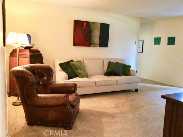 Retire in STYLE! This wonderful single level, 1 bedroom penthouse condo is located in one of the most desired locations in the prestigious 55+ Landmark Community. The spacious living and dinning rooms are perfect for entertaining and are directly off the large, private, covered balcony with a beautiful view of the lush park like grounds... perfect for dining al fresco or just enjoying the ocean breeze. The kitchen has newer cabinets and Corian counter tops, all new appliances and a new garbage disposal. The bathroom has a granite counter top, tile floor and newer fixtures. The large bedroom has a walk-in closet and the one car garage has plenty of storage space. Enjoy the many amenities including a recreation center with a variety of classes and activities, heated swimming pools, tennis courts, a putting green, shuffleboard, horseshoes, a gym, a billiards room, a library and community excursions. All this and just a mile to the beach with shopping, restaurants and the Huntington Beach pier just minutes away.