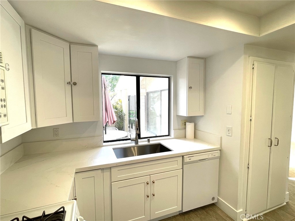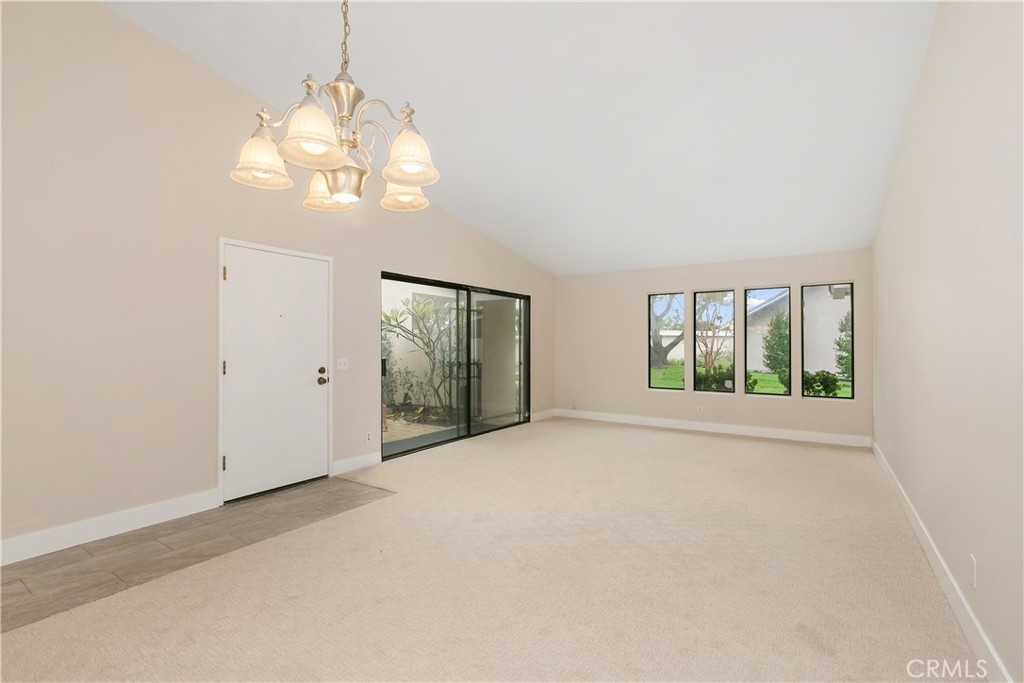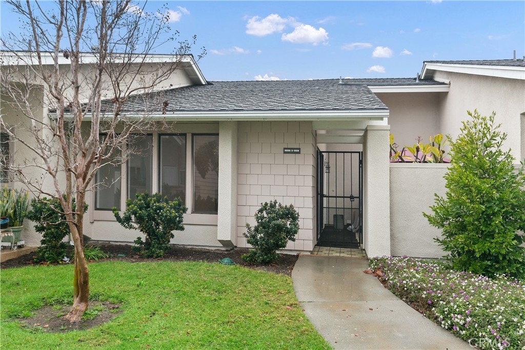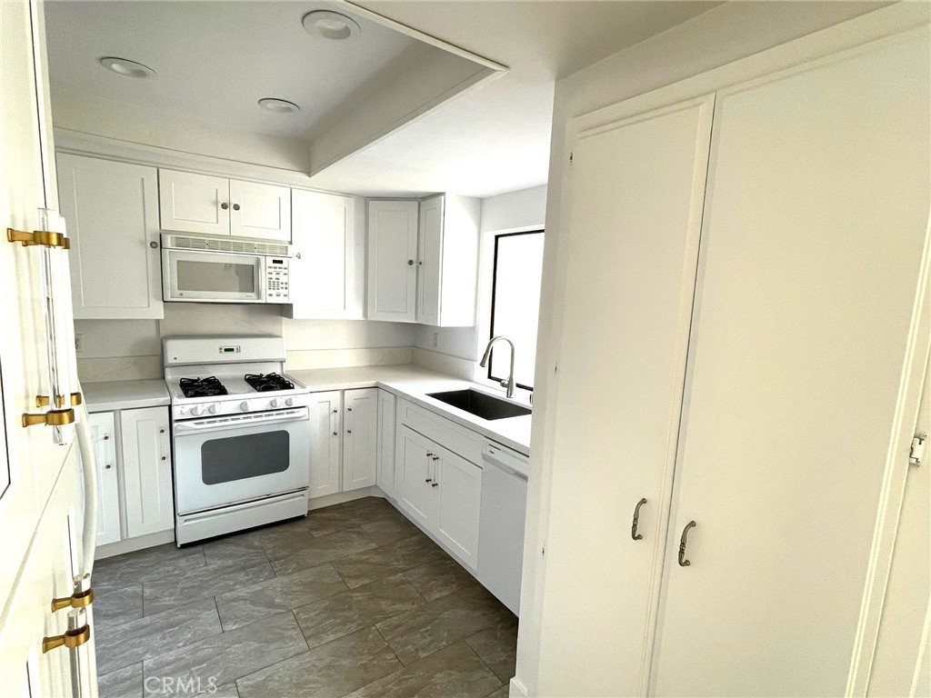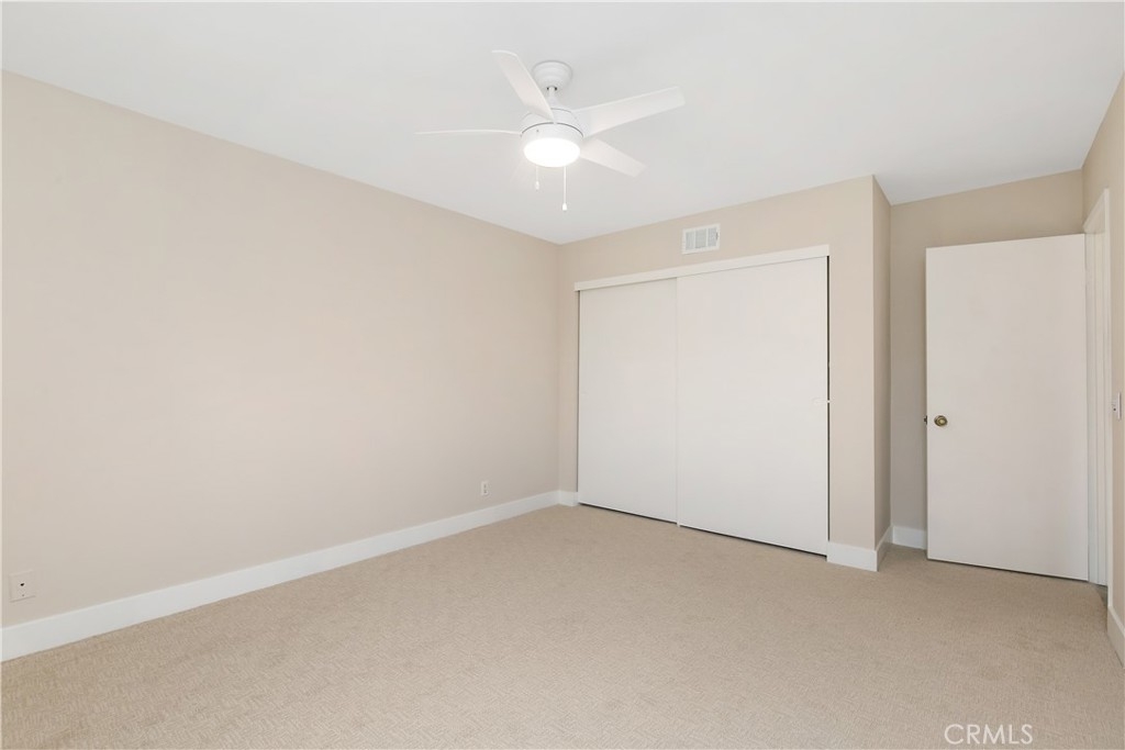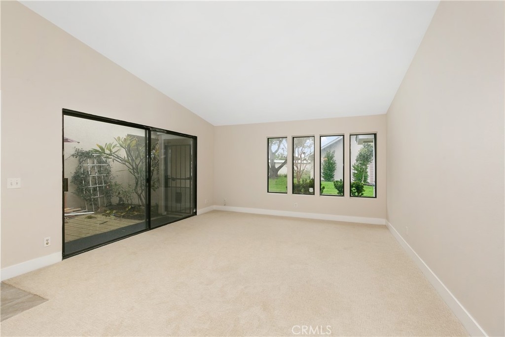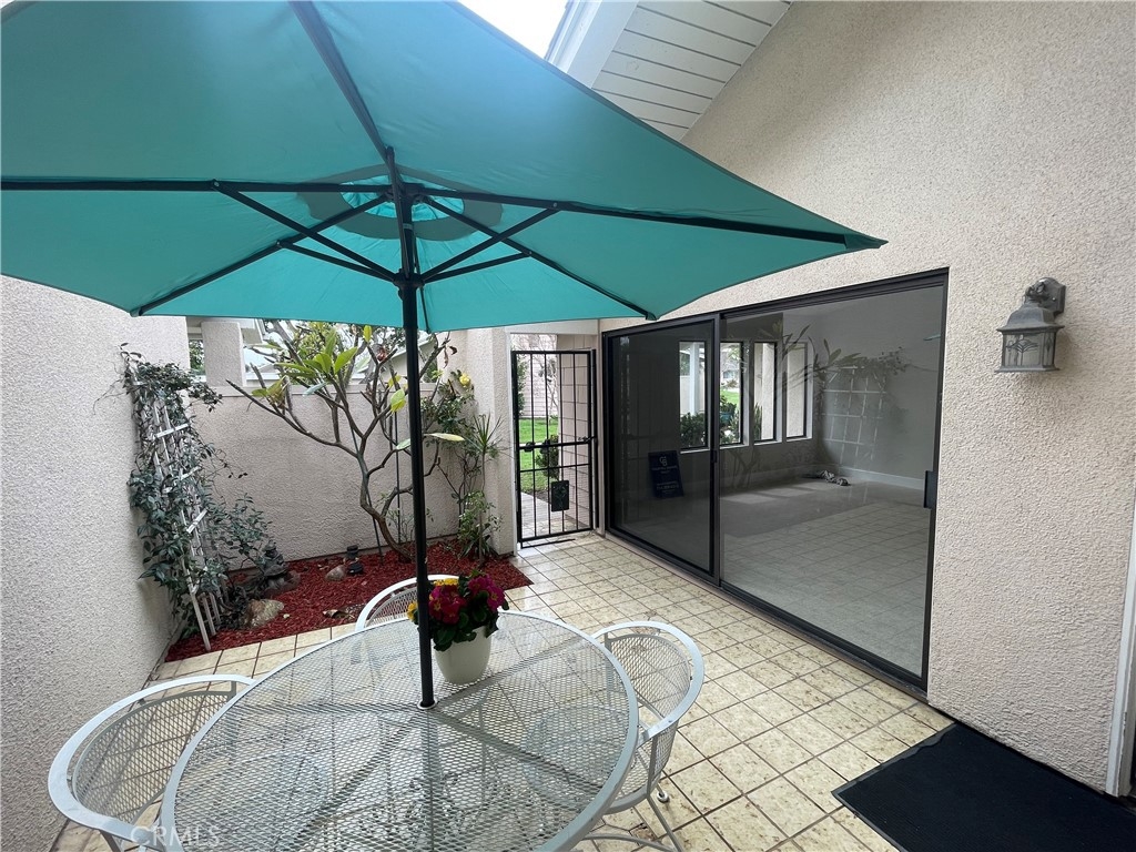 Remodeled 55+ Huntington Landmark, Marina Model 2 bedroom and 2 bath home within a guard gated community. This spacious Single level home has been upgraded throughout. You enter your new home through a spacious atrium style courtyard featuring lots of natural light leading to an oversized living / dining room featuring vaulted ceilings. The entire home has new carpet and paint throughout, new kitchen cabinets with stylish quarts countertops, and custom tile flooring. The spacious primary suite has an upgraded dual vanity, large walk-in closet, new ceiling fan, and a second patio looking out to park-like settings. The second bedroom also has a new ceiling fan, carpet and paint. There is also a end unit single car garage just steps from your front door. Huntington Landmark offers a resort style living with lots of amenities. The community includes 24-hour security, 2 swimming pools, hot tubs, library, gym, classes, tennis and pickle ball courts, concerts, community activities, and much more!