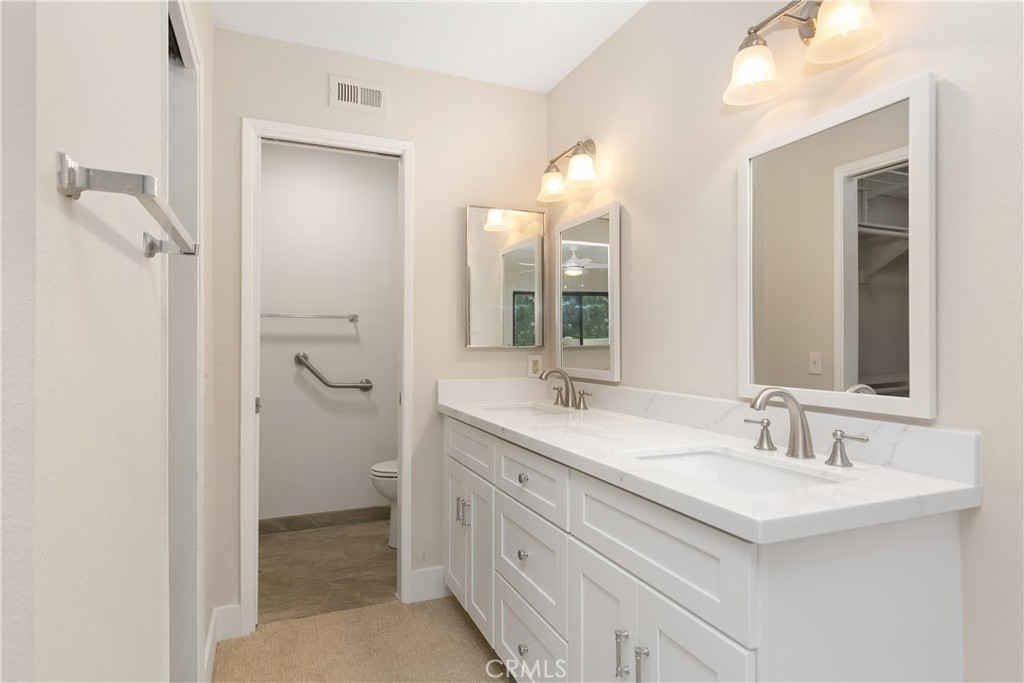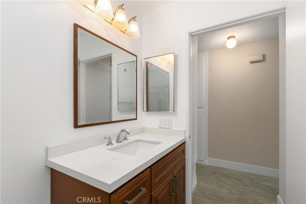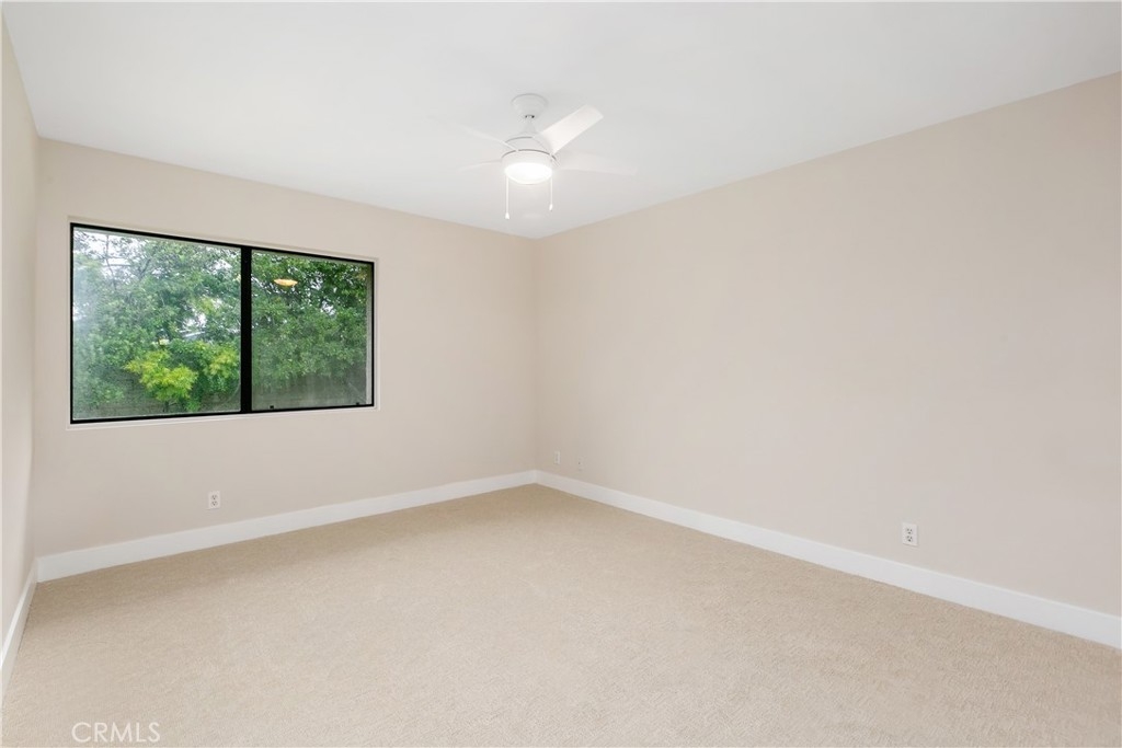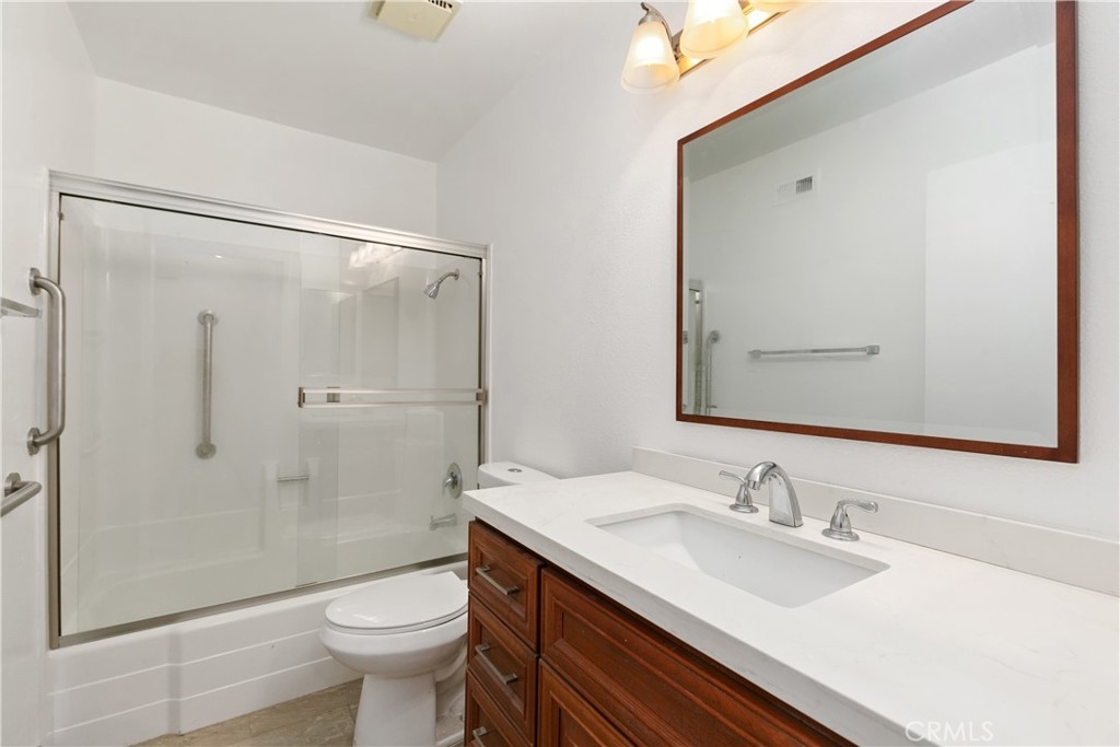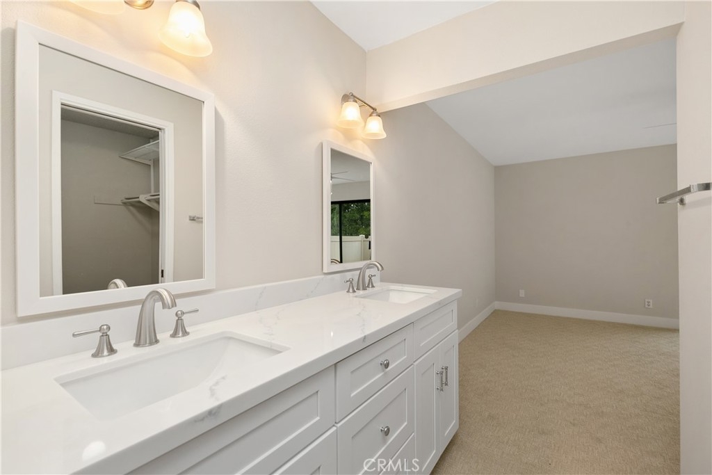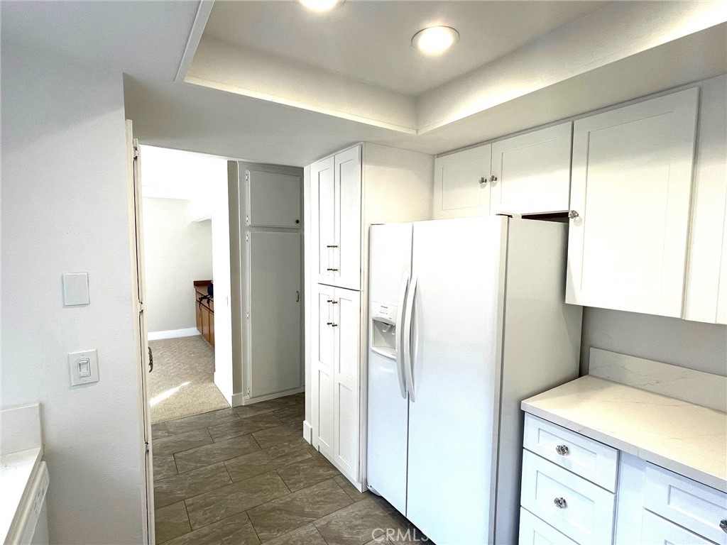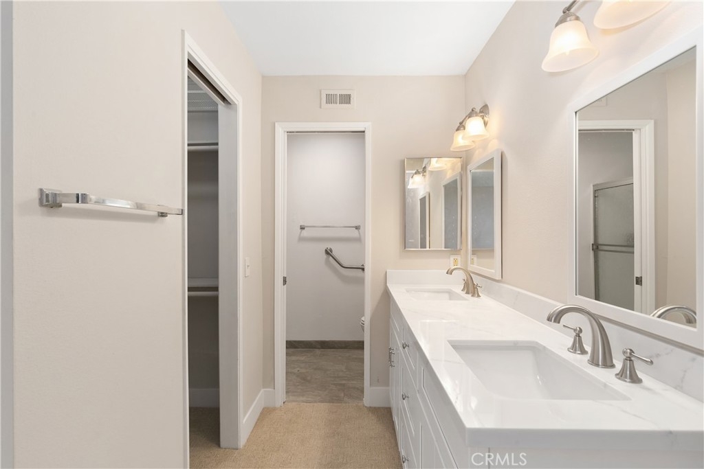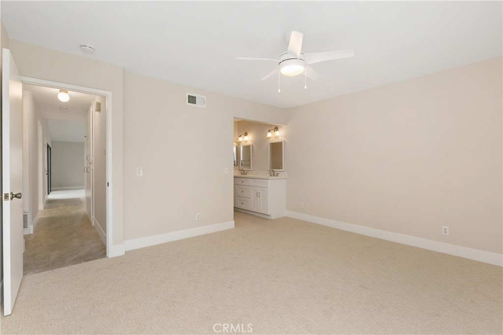 Remodeled 55+ Huntington Landmark, Marina Model 2 bedroom and 2 bath home within a guard gated community. This spacious Single level home has been upgraded throughout. You enter your new home through a spacious atrium style courtyard featuring lots of natural light leading to an oversized living / dining room featuring vaulted ceilings. The entire home has new carpet and paint throughout, new kitchen cabinets with stylish quarts countertops, and custom tile flooring. The spacious primary suite has an upgraded dual vanity, large walk-in closet, new ceiling fan, and a second patio looking out to park-like settings. The second bedroom also has a new ceiling fan, carpet and paint. There is also a end unit single car garage just steps from your front door. Huntington Landmark offers a resort style living with lots of amenities. The community includes 24-hour security, 2 swimming pools, hot tubs, library, gym, classes, tennis and pickle ball courts, concerts, community activities, and much more!