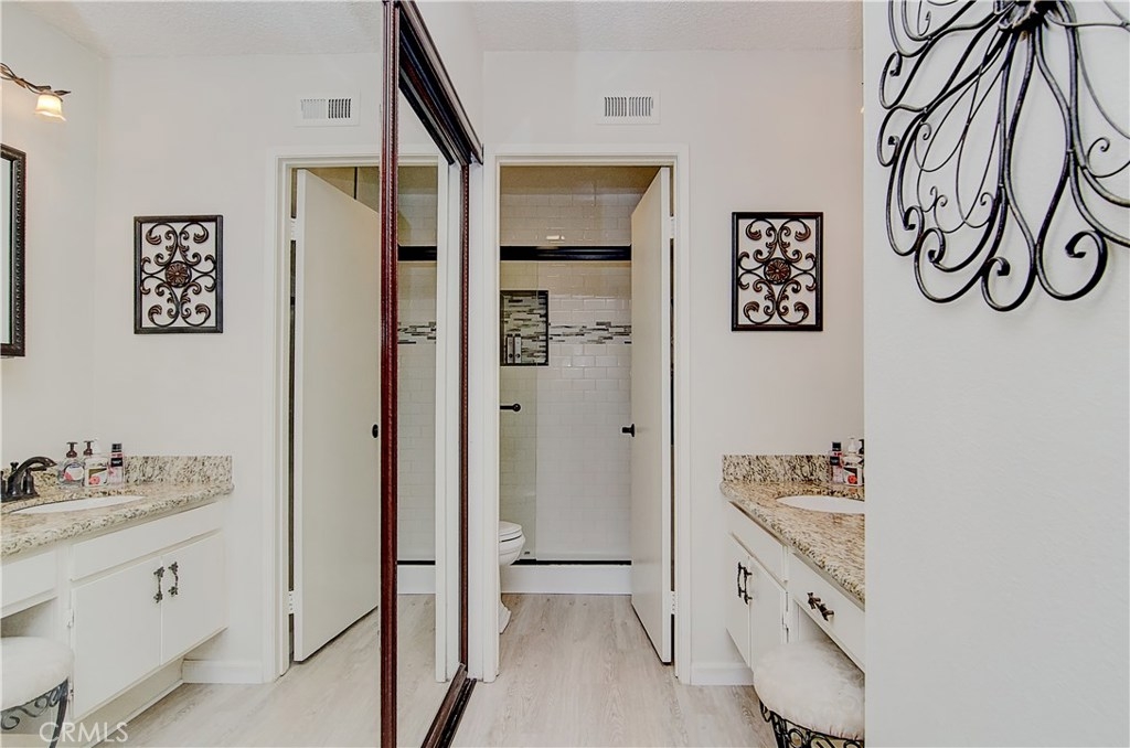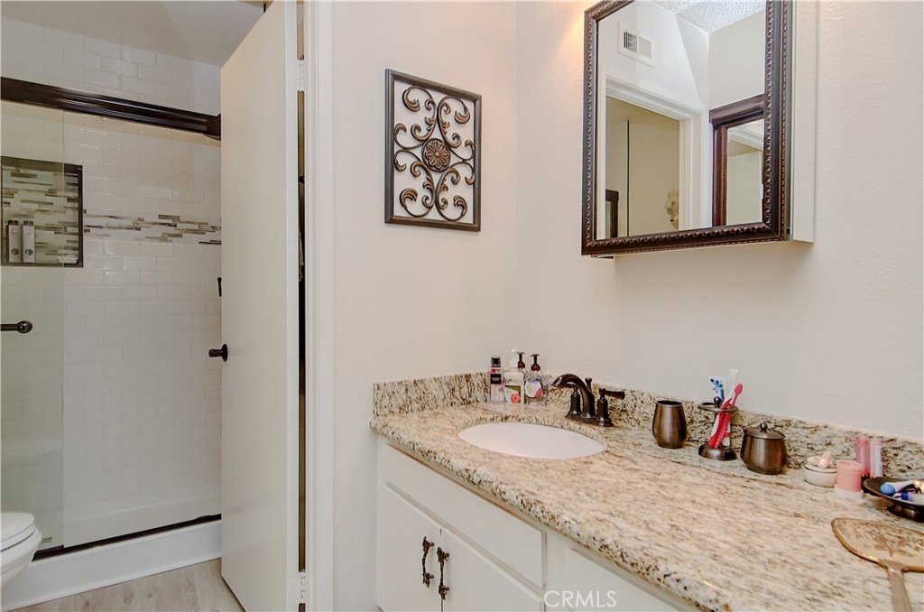 COME HOME TO SERENITY.... MUST SEE THIS UNIQUE CORNER UNIT PACIFICA MODEL CONDO- 2 BED - 2 BATHS - 1 CAR GARAGE IN DESIRABLE 55+ COMMUNITY OF HUNTINGTON LANDMARK. THIS LOVELY CONDO IS NICELY LOCATED, CLOSE TO PARKING WITH ONLY 2 CONDOS IN THE SAME BUILDING. IT FEATURES VAULTED CEILINGS, GRANITE COUNTER-TOPS IN KITCHEN, RECESSED LIGHTING, TOP QUALITY STAINLESS STEEL APPLIANCES, NEW DOUBLE PANE WINDOWS, ELEGANT LAMINATE FLOORS THROUGH OUT, NEWLY RENOVATED BATHROOMS, NEW BLOCK WALL, NEW GARAGE DOOR, NEW SCREEN-SECURITY DOOR. BRIGHT AND PRIVATE. THE COMMUNITY OFFERS RESORT STYLE LIVING WITH THE MANY AMENITIES, 2 HEATED SWIMMING POOLS AND SPA, TENNIS COURTS, PUTTING GREEN, SHUFFLE BOARD, GYM AND WEIGHT ROOM, CLUB HOUSE, GATED AND GUARDED COMMUNITY, CERAMIC ROOM, WOOD-SHOP, LIBRARY, BILLIARD ROOM, AND MANY ACTIVITIES FOR YOUR ENJOYMENT.